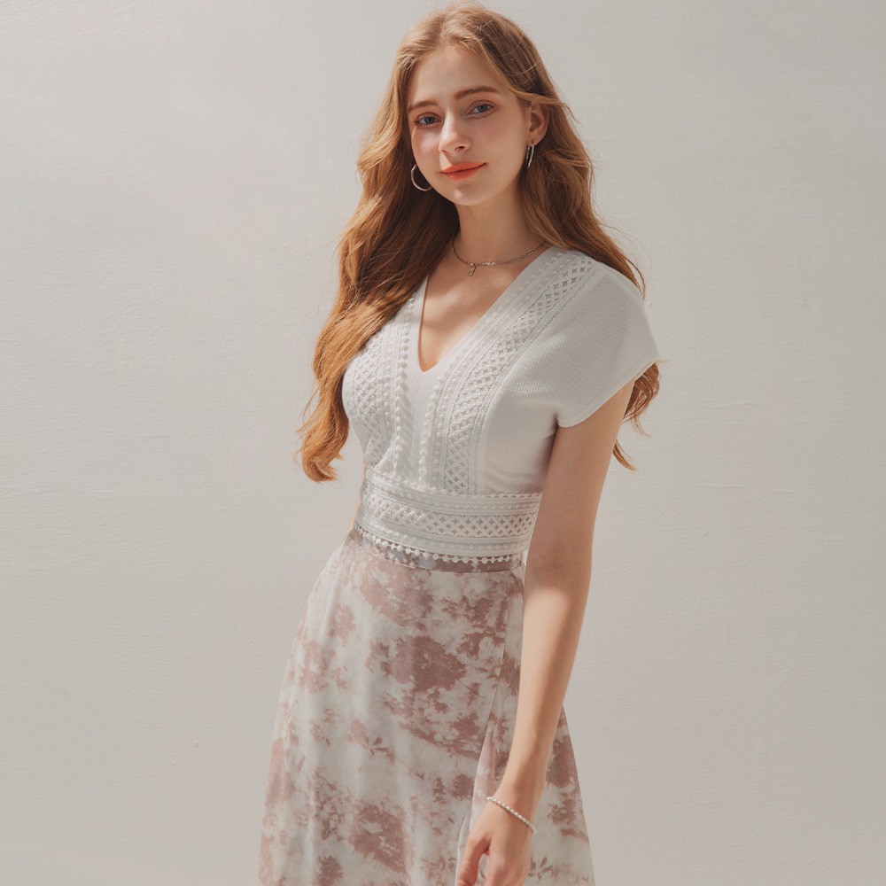 AIR SPACE 度假波西前後V領綁帶背心(白)