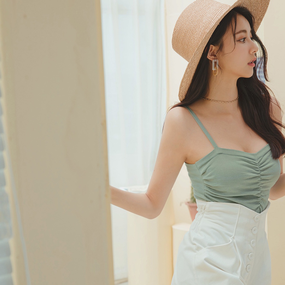 AIR SPACE LADY 細肩抓皺顯瘦背心(湖水綠)