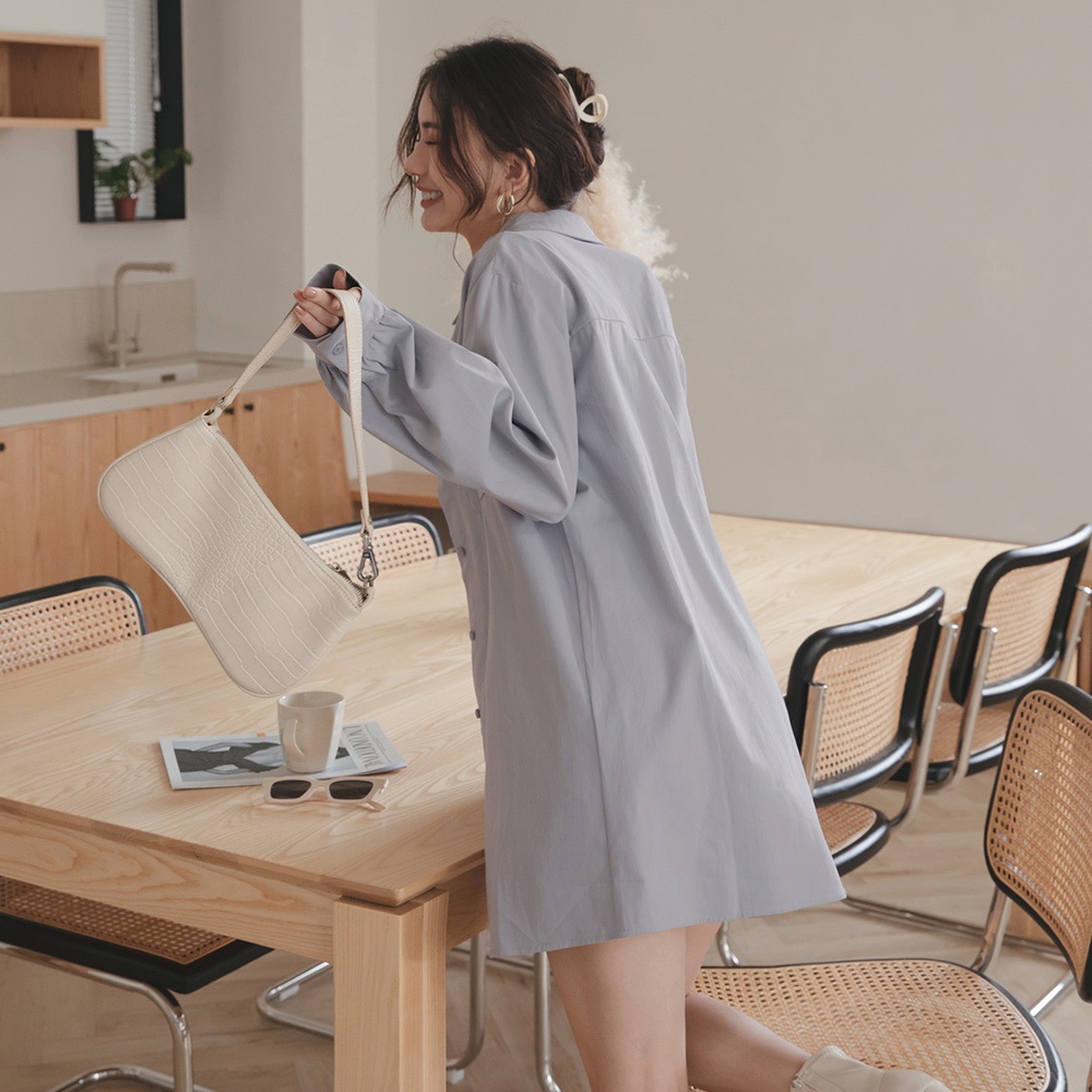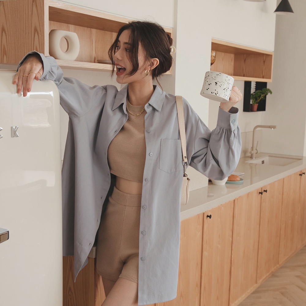 AIR SPACE LADY 百搭長版襯衫(白/藍灰) 女裝 現貨