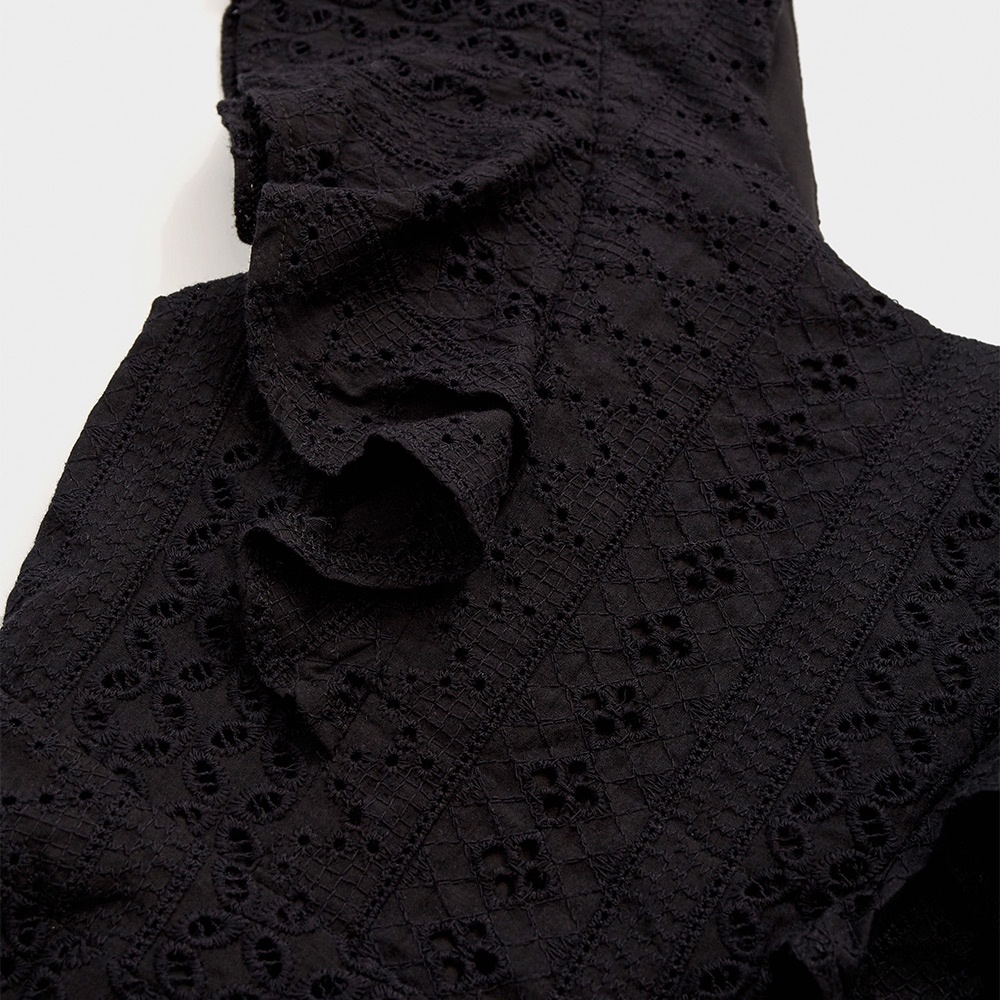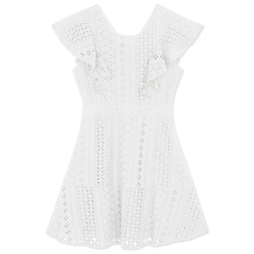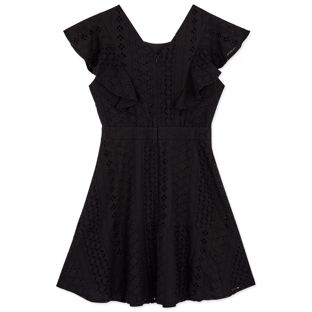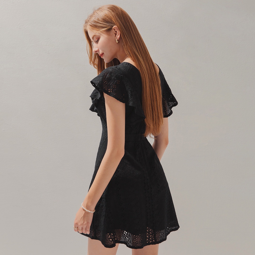 AIR SPACE 燒花蕾絲荷葉邊袖短洋裝(白/黑)