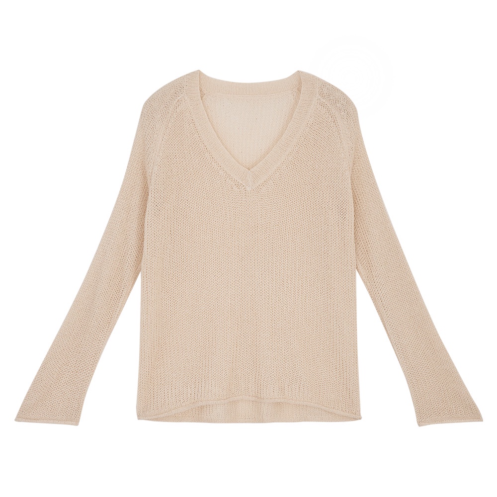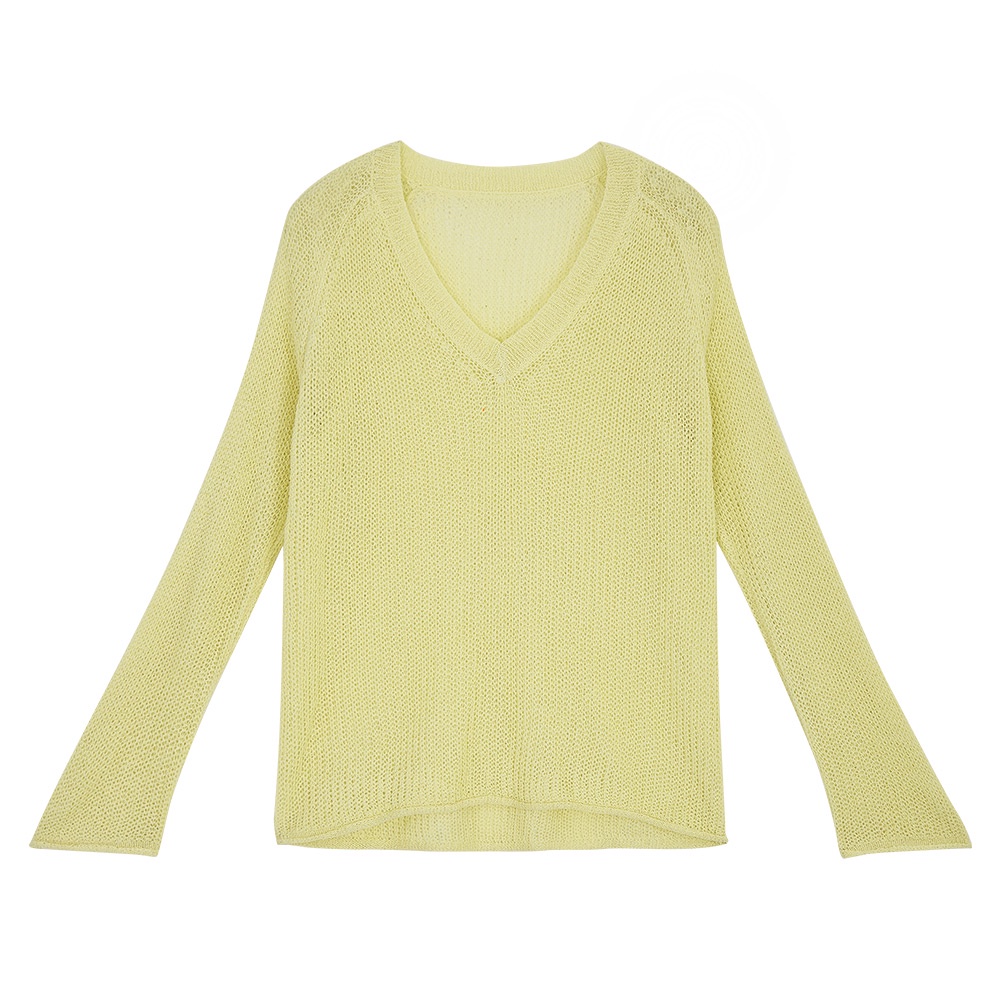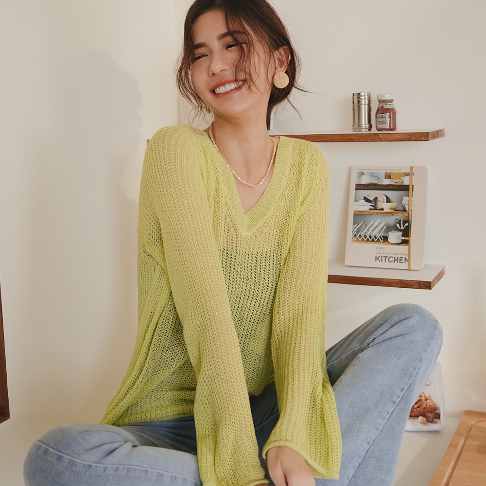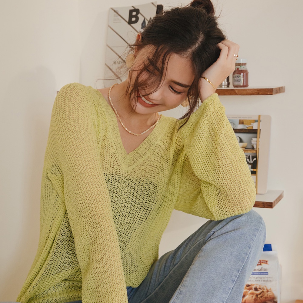 AIR SPACE LADY V領透膚針織上衣(綠/杏/黑)