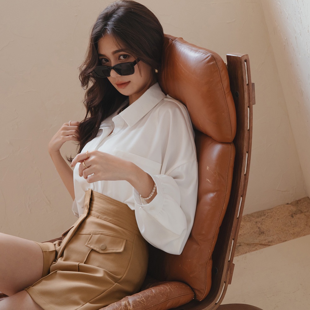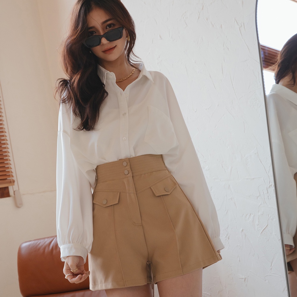 AIR SPACE LADY 個性高腰立體褶線短褲(駝)