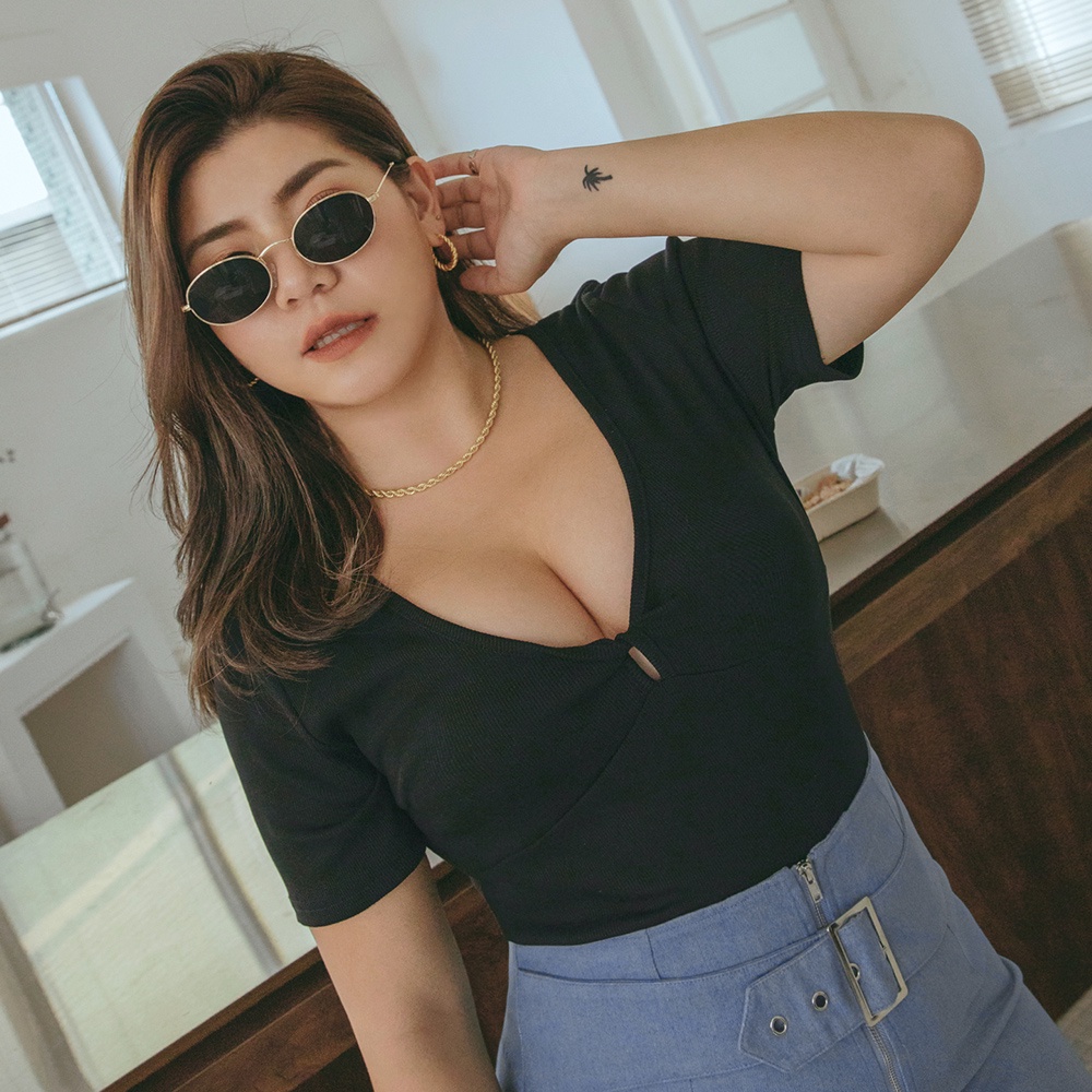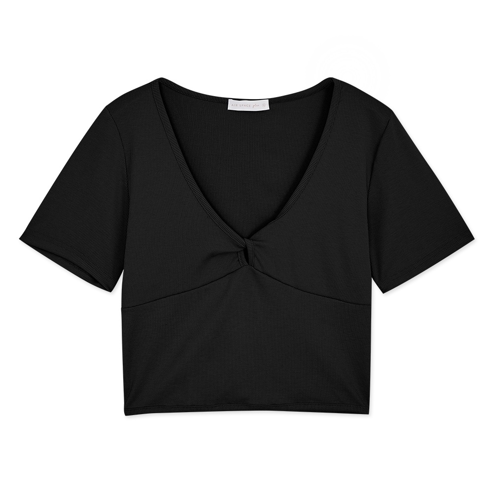 AIR SPACE PLUS 小扭結造型短版上衣(黑/藍) 女裝 現貨 大尺碼 中大尺碼