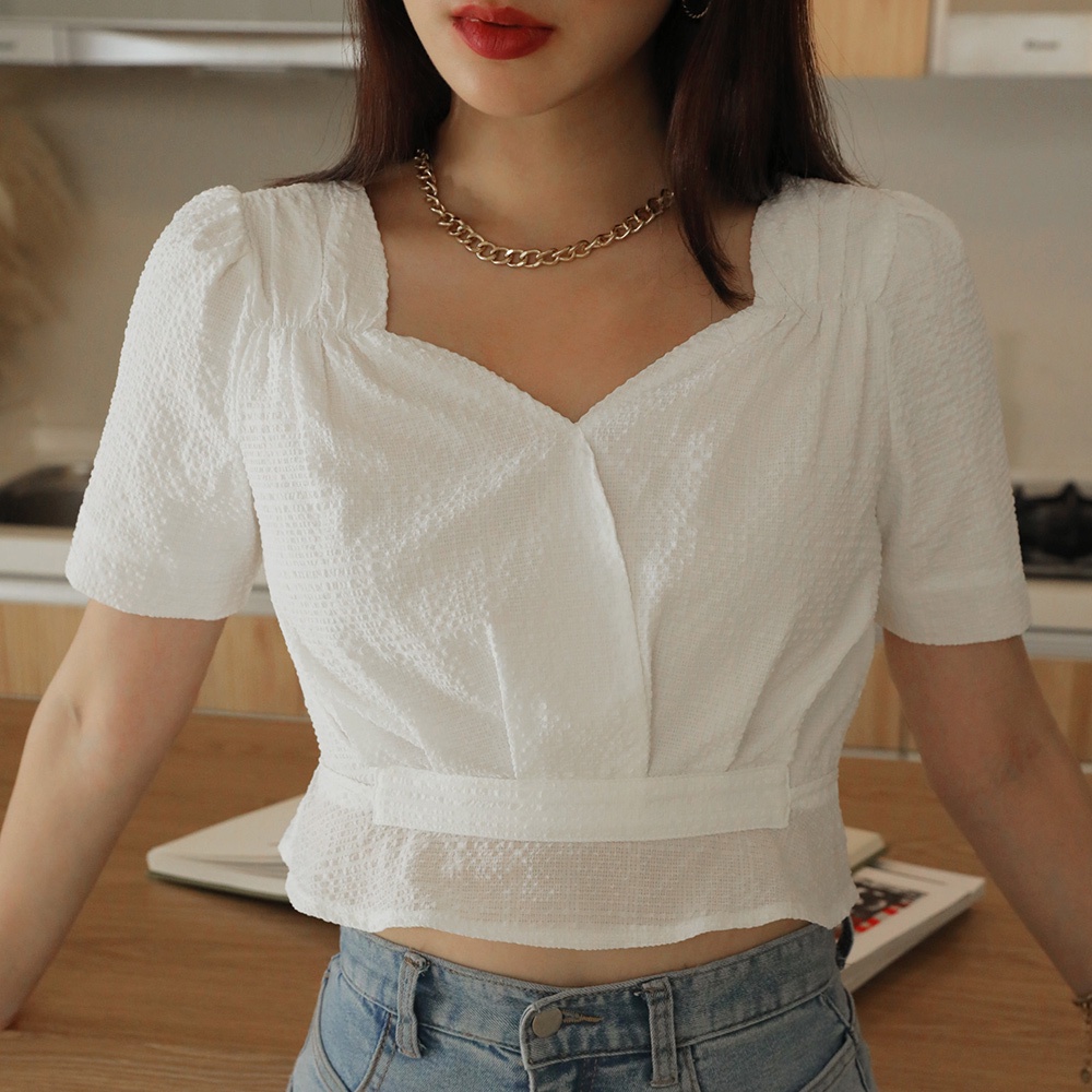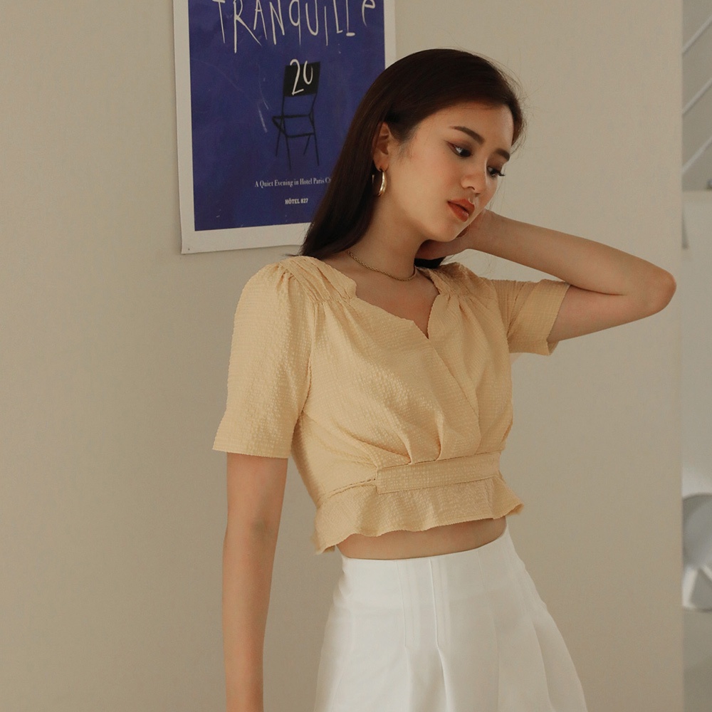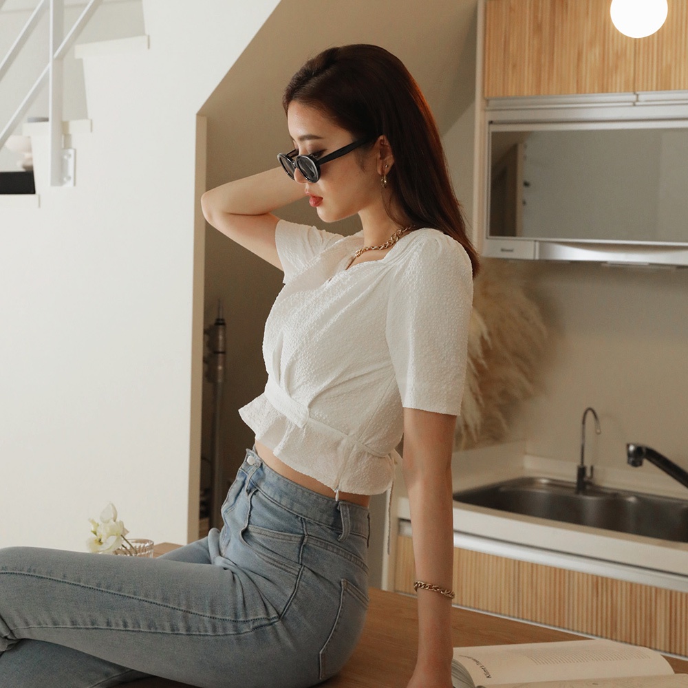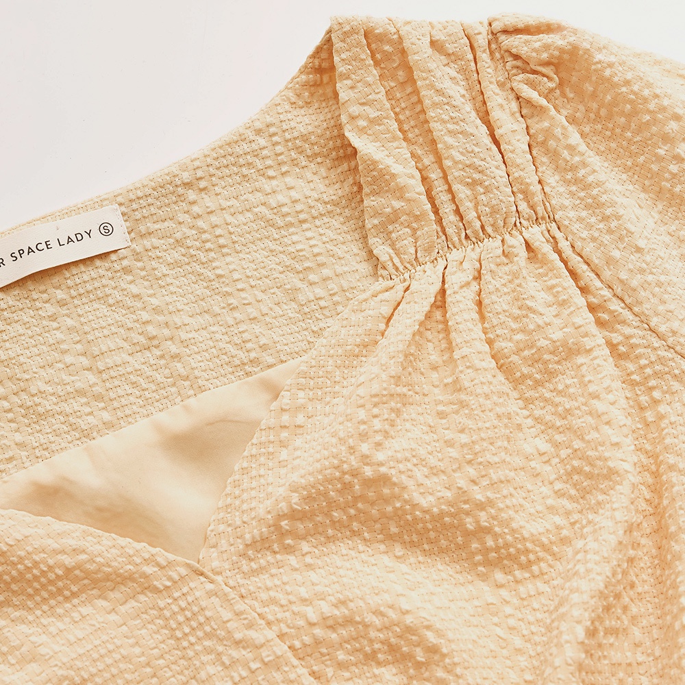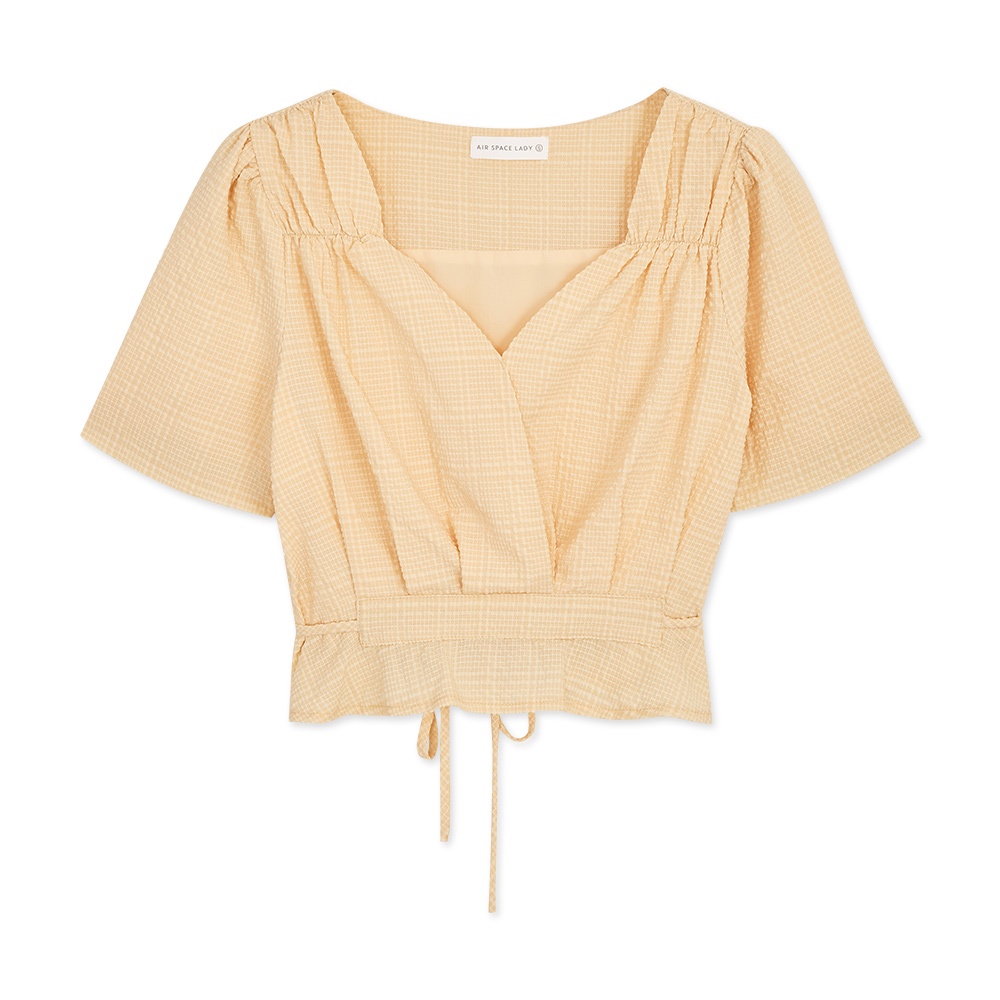AIR SPACE LADY 細格紋後綁帶上衣(白/黃) 女裝 現貨