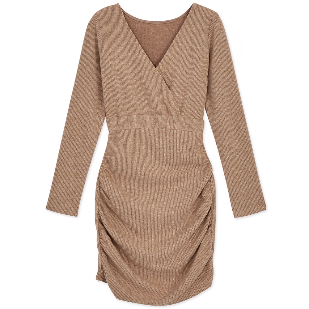 AIR SPACE 磨毛V領皺皺包臀短洋裝(咖啡/黑)女裝 歐美 晚宴 約會 派對 尾牙
