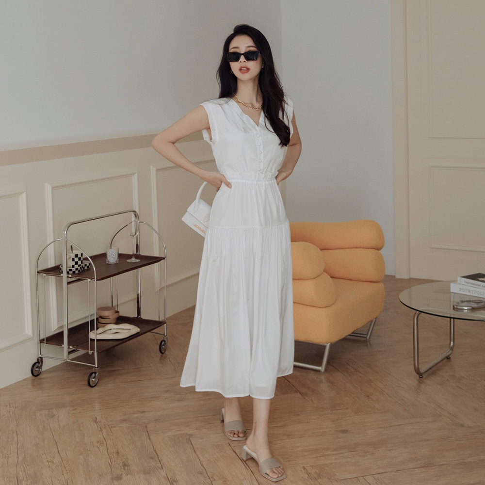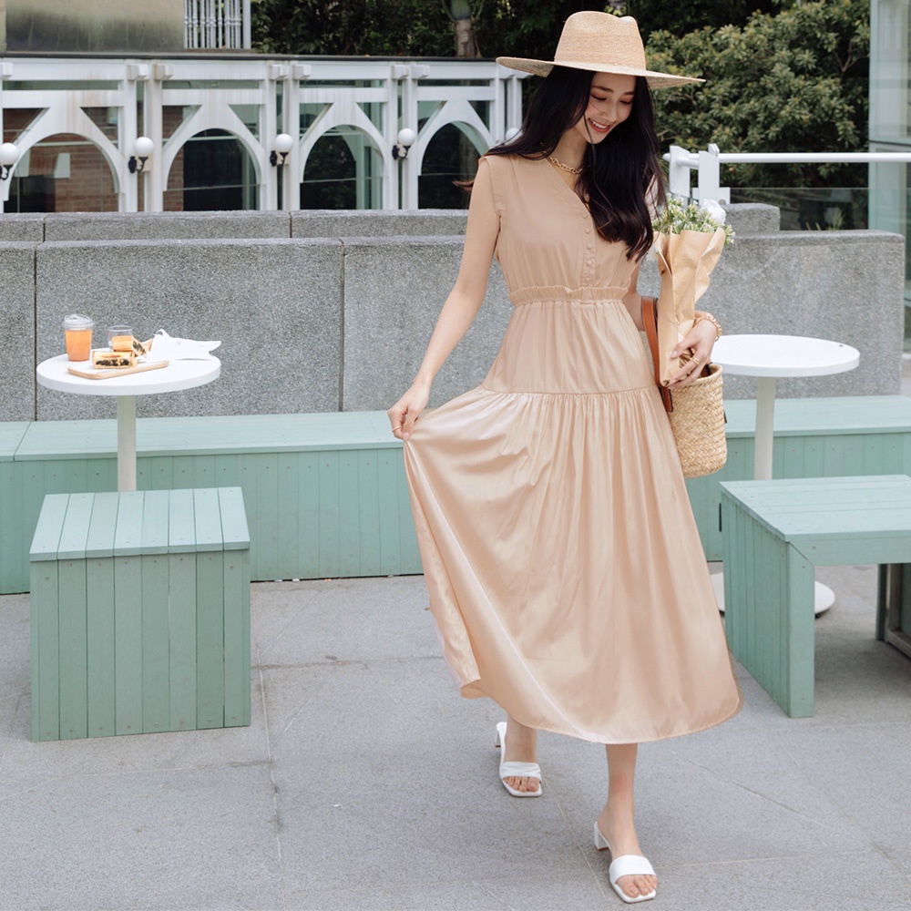 AIR SPACE LADY 仙女無袖拼接長洋裝(粉紅/白) 女裝 現貨
