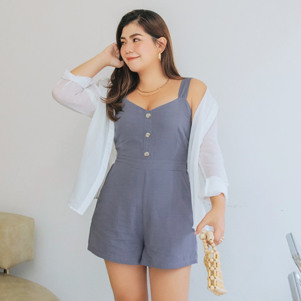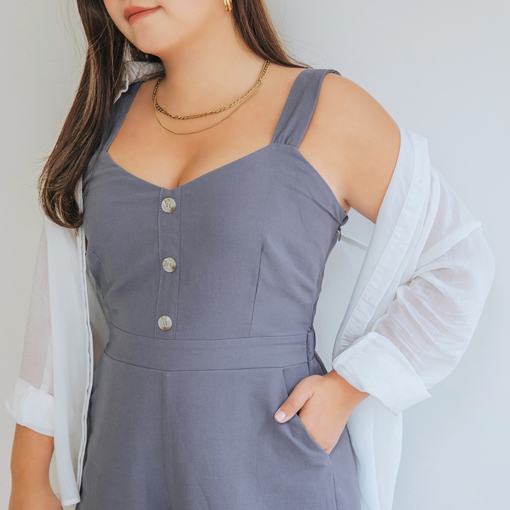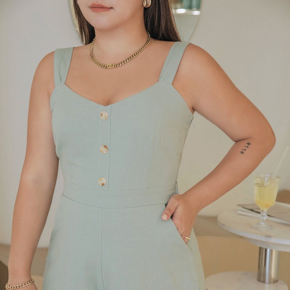 AIR SPACE PLUS 清新背心連身短褲(藍/灰綠) 女裝 現貨 大尺碼 中大尺碼