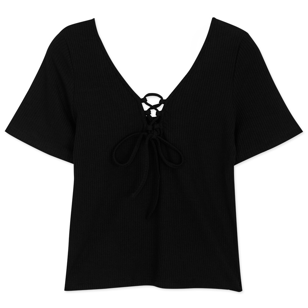 AIR SPACE 2WAY交叉綁帶短版上衣(白/黑) 女裝 現貨