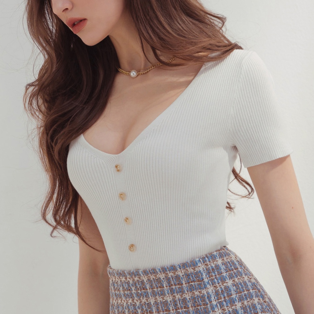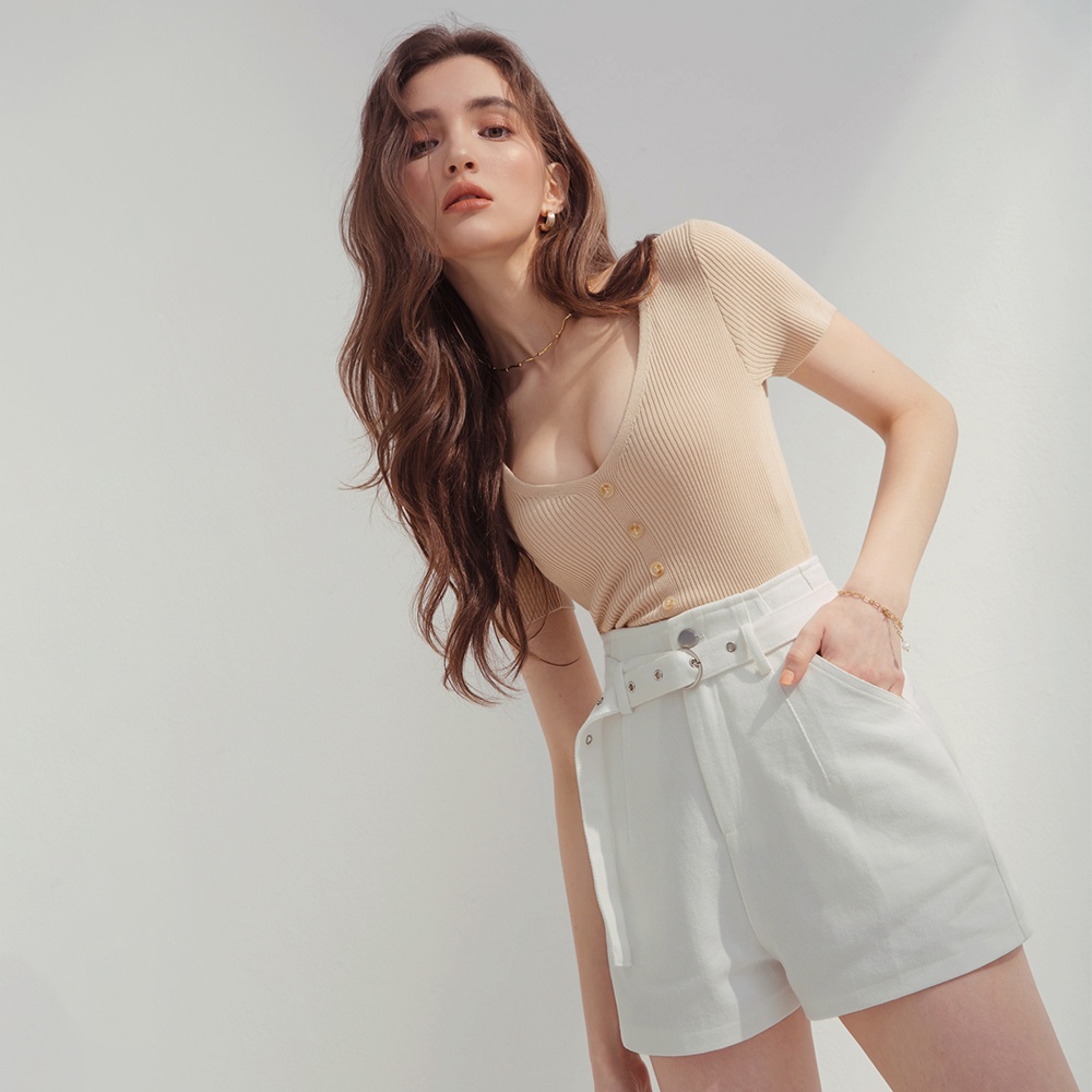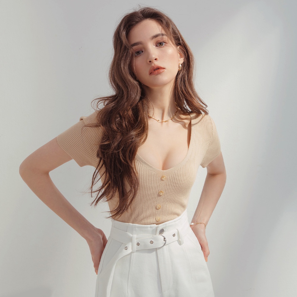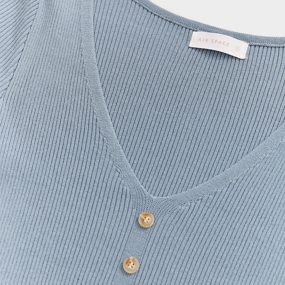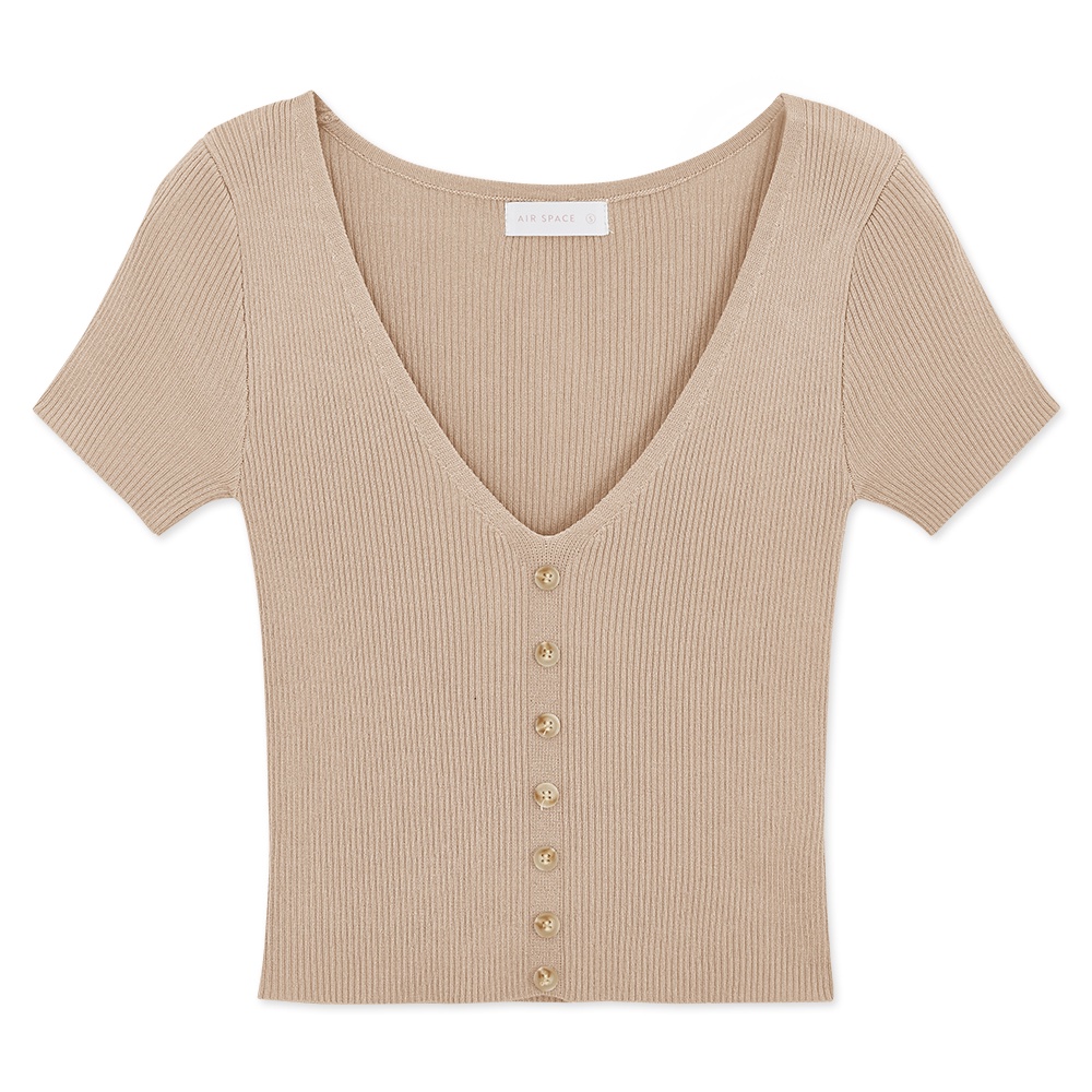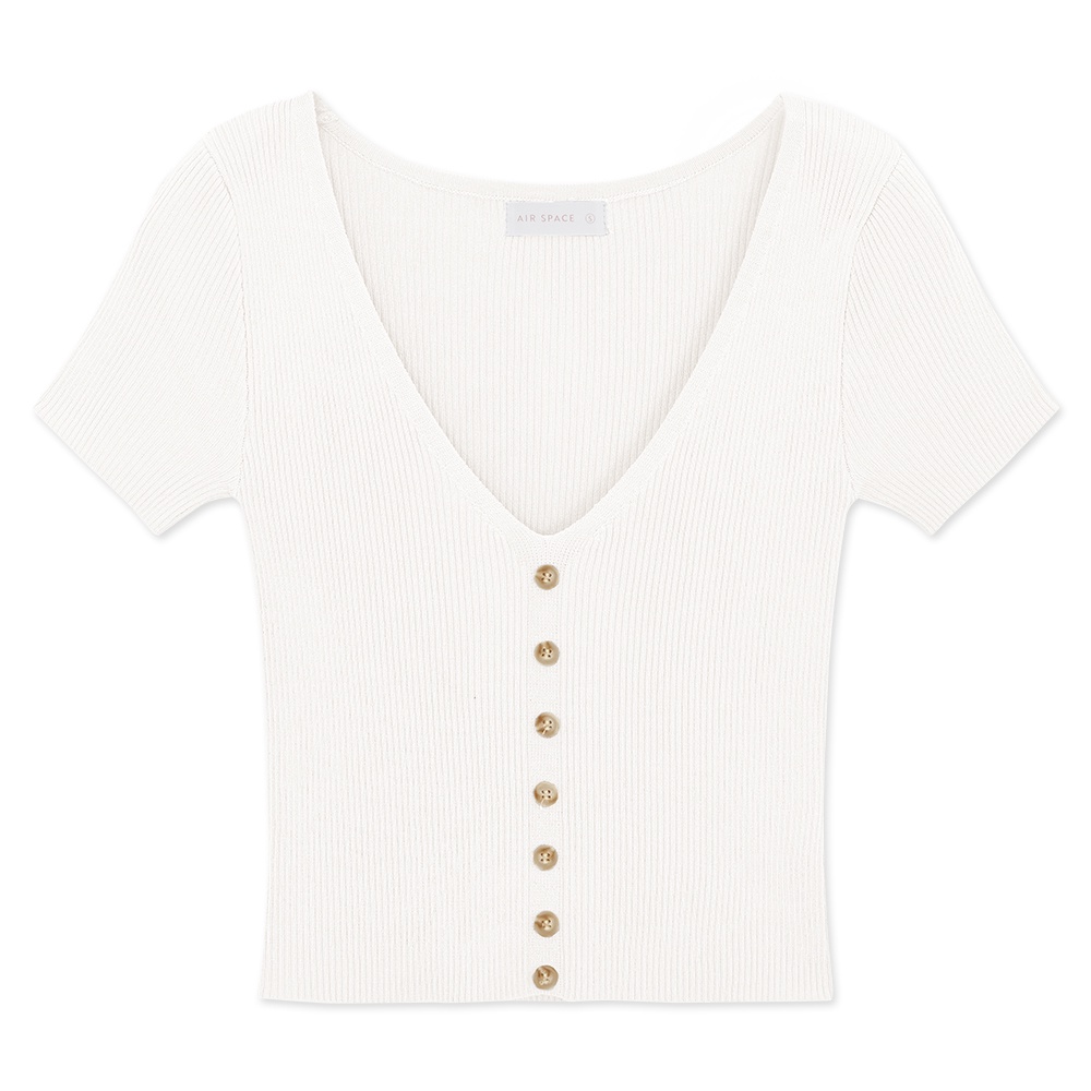 AIR SPACE 低胸排釦造型羅紋上衣(白/杏/藍灰) 女裝 現貨