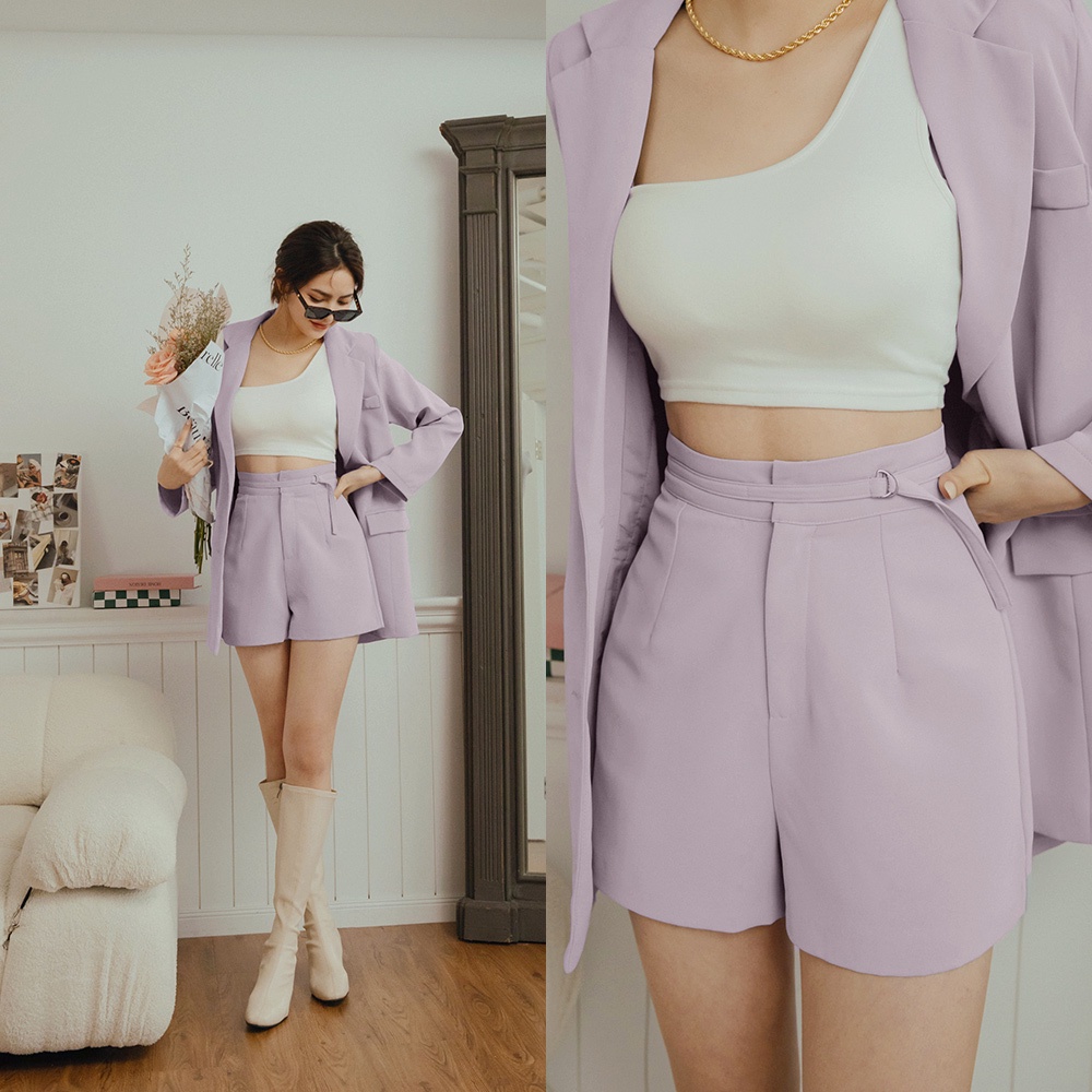 AIR SPACE LADY 高腰飾帶西裝短褲(淺紫/深杏/奶油白) 女裝 現貨
