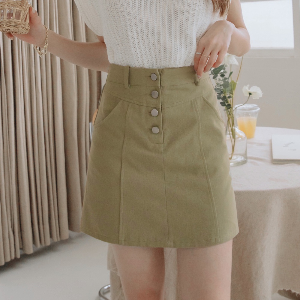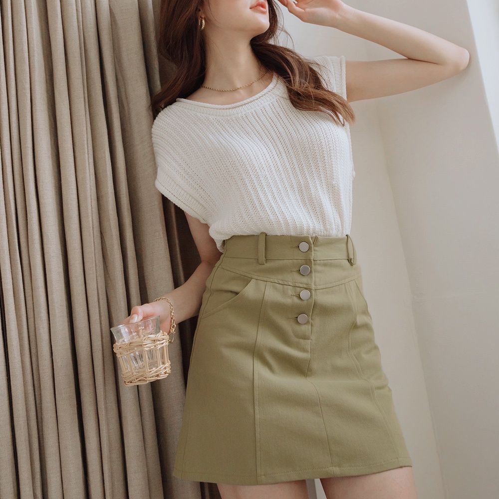 AIR SPACE LADY 高腰裁線設計排釦短裙(白/軍綠) 女裝 現貨
