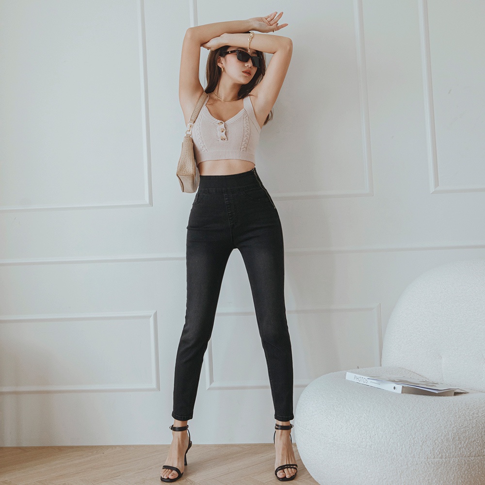 AIR SPACE 【零修圖3.0】小隻女小腰姬側拉翹臀顯瘦牛仔褲(黑) 女裝 現貨