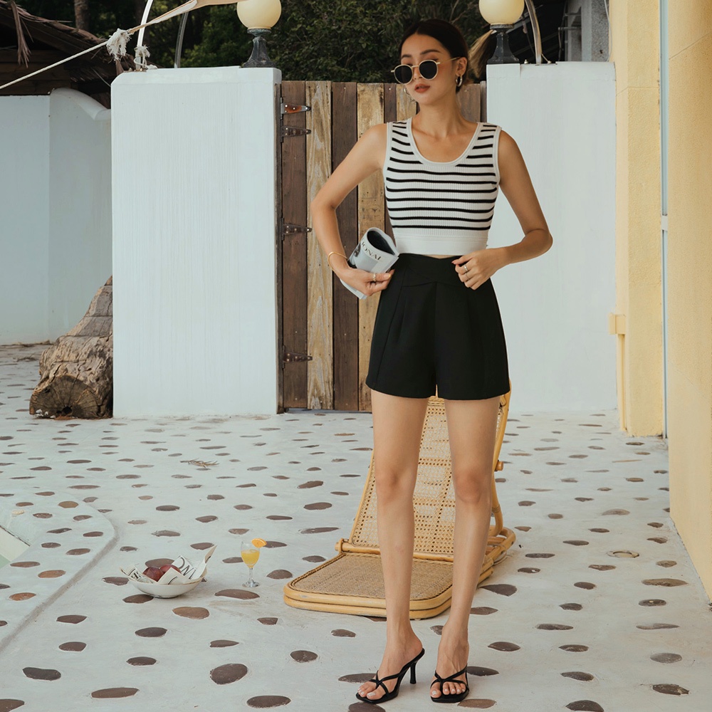AIR SPACE LADY 小交疊細節顯瘦短褲(黑/白) 女裝 現貨