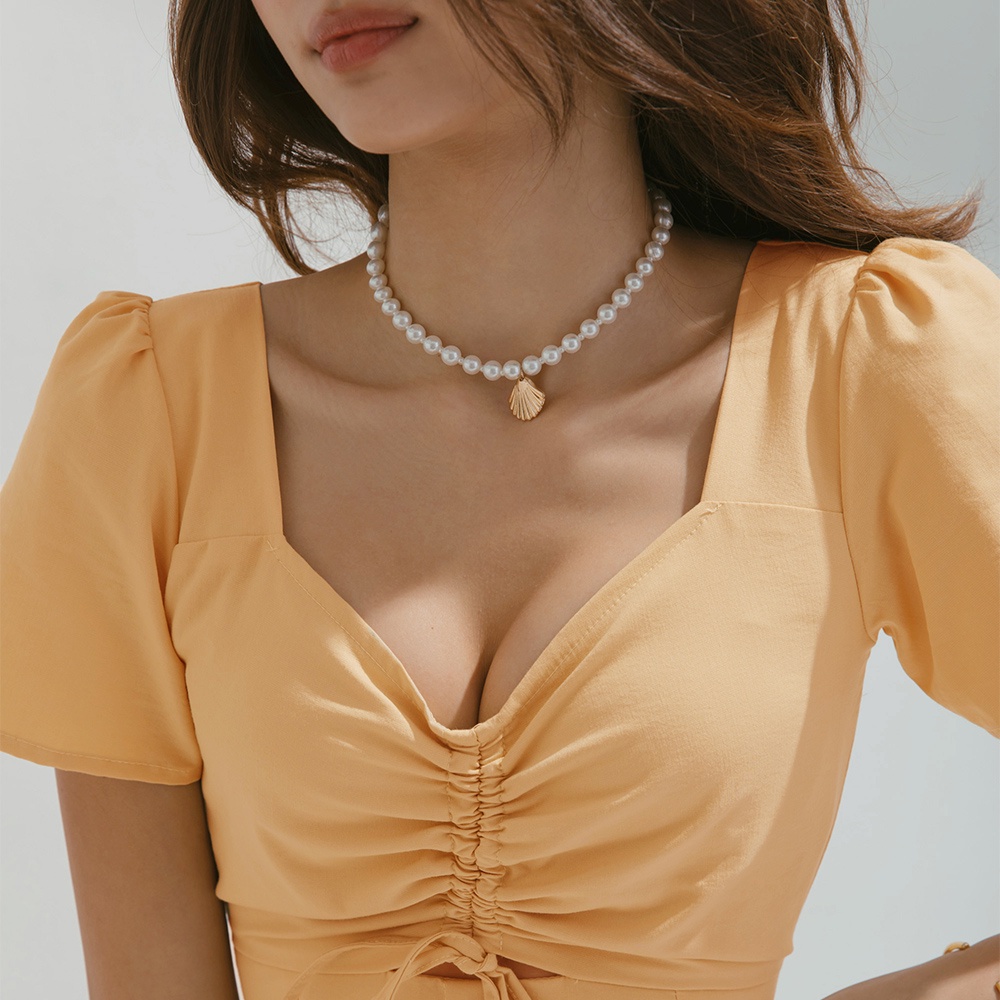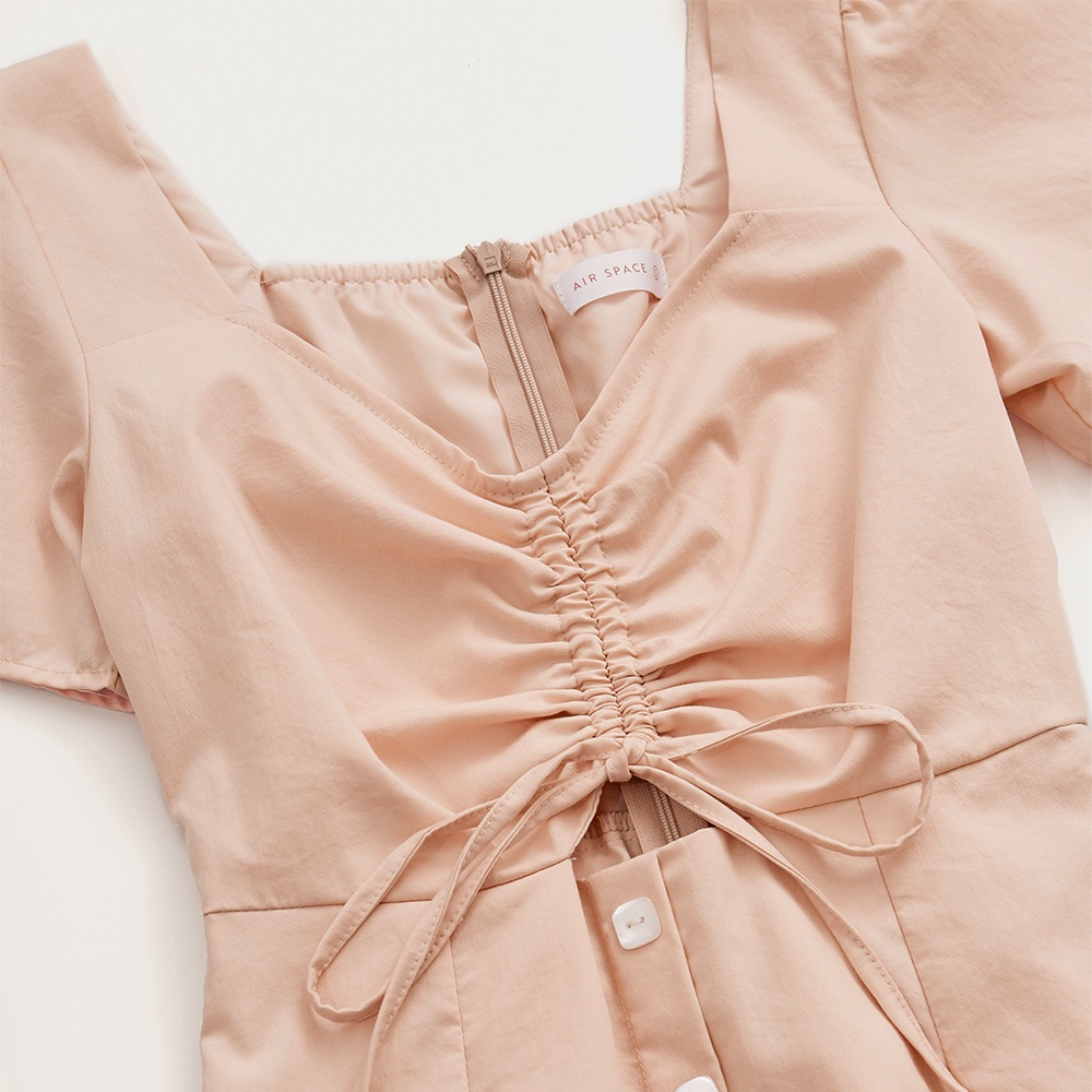 AIR SPACE 桃心方領抽繩鏤空短洋裝(黃/粉紅) 女裝 現貨