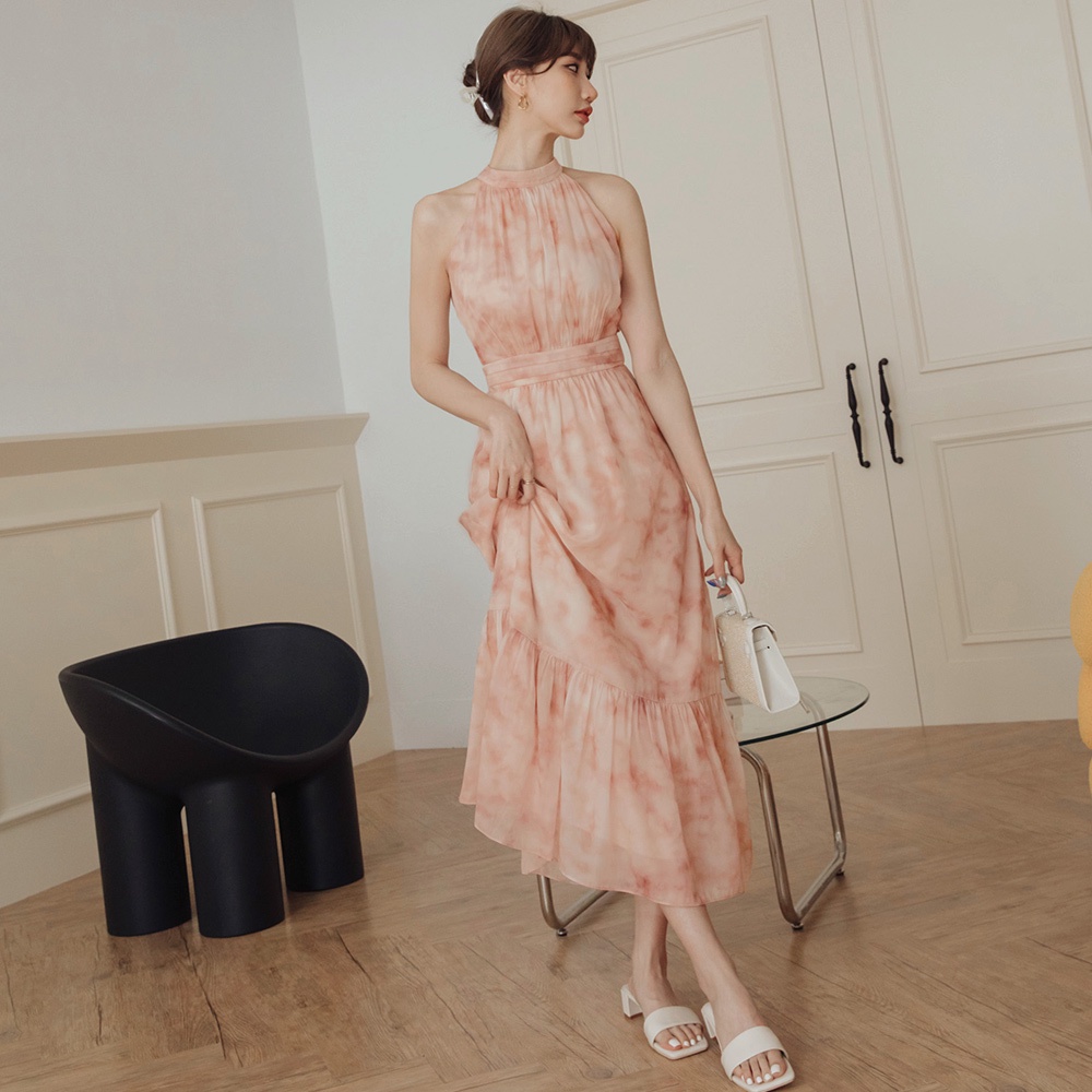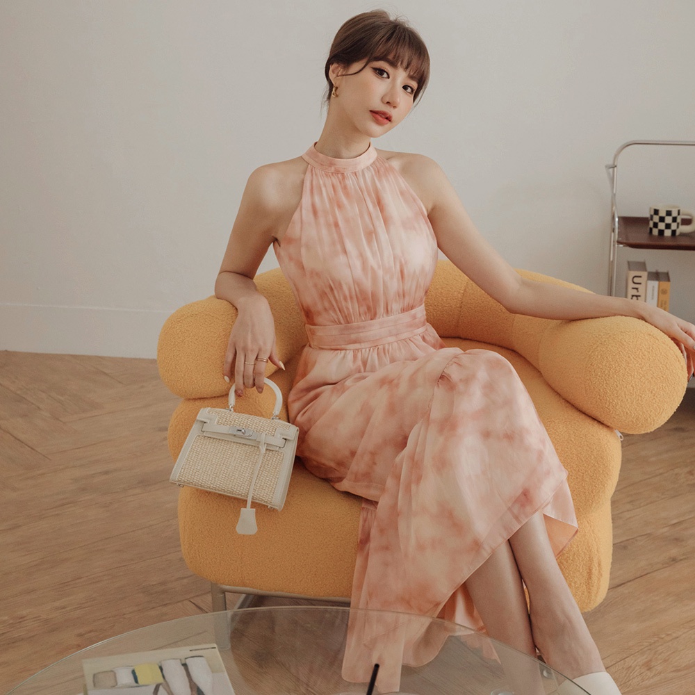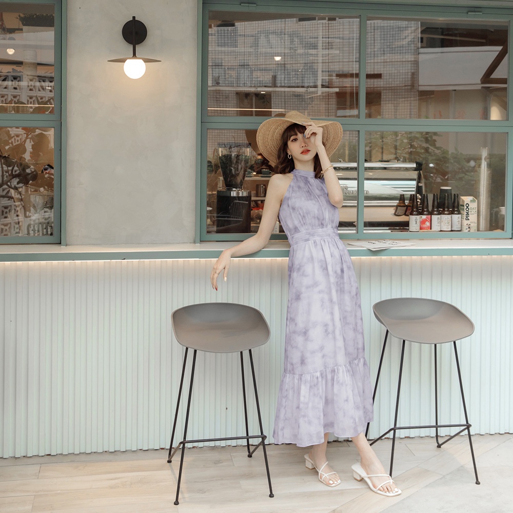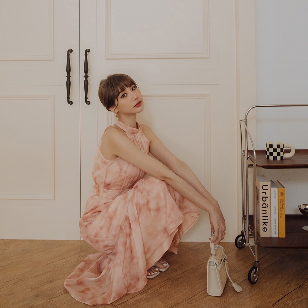 AIR SPACE LADY 迷幻暈染削肩長洋裝(粉紅/紫) 女裝 現貨