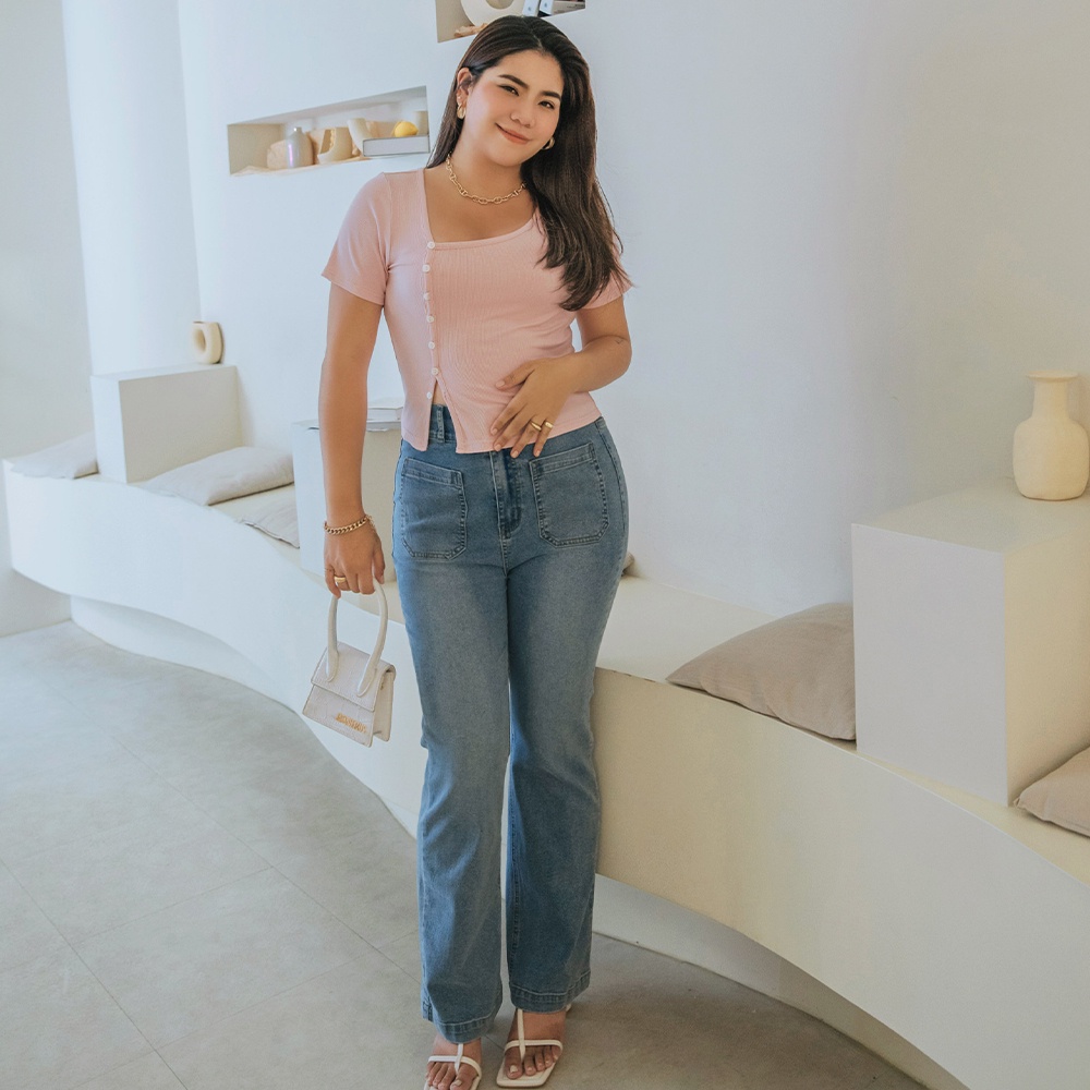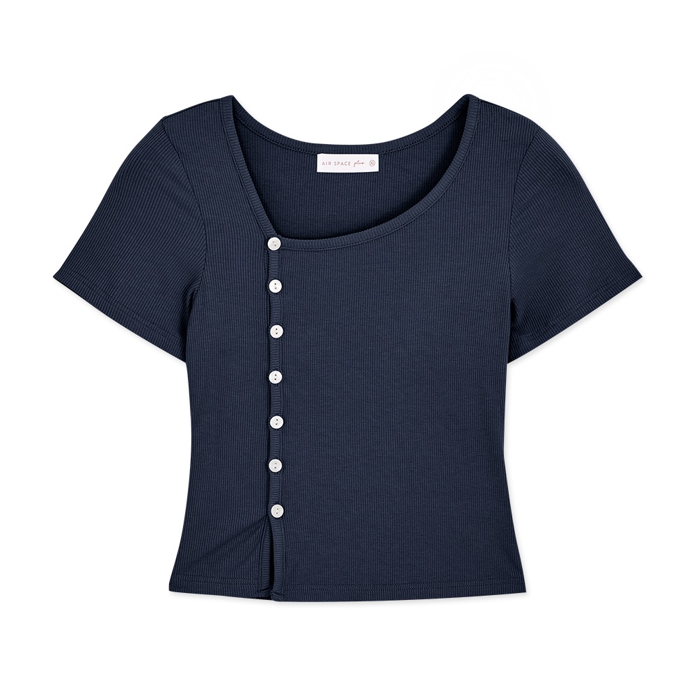 AIR SPACE LADY 中大尺碼 側釦小開衩上衣(深藍/粉紅) 女裝 現貨大尺碼