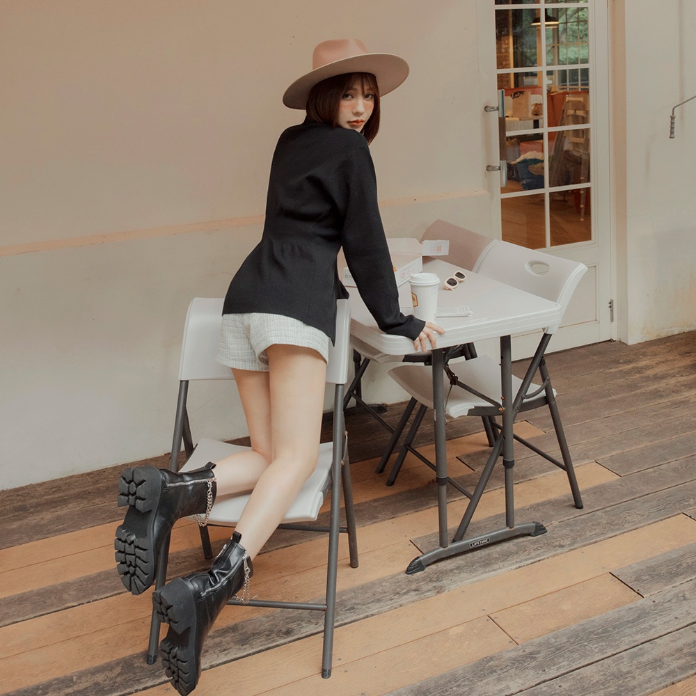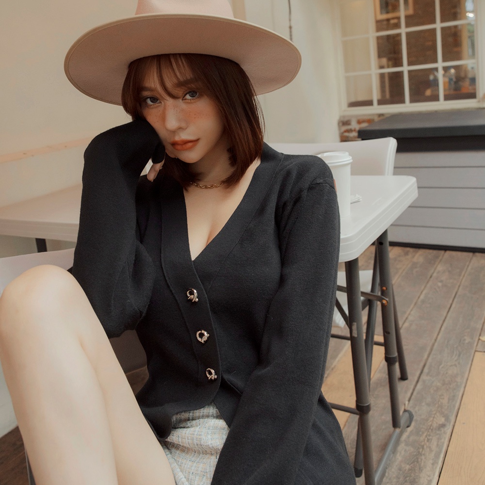 AIR SPACE LADY 【阿民聯名】V領銀釦開衩針織外套(黑/杏) 女裝 現貨