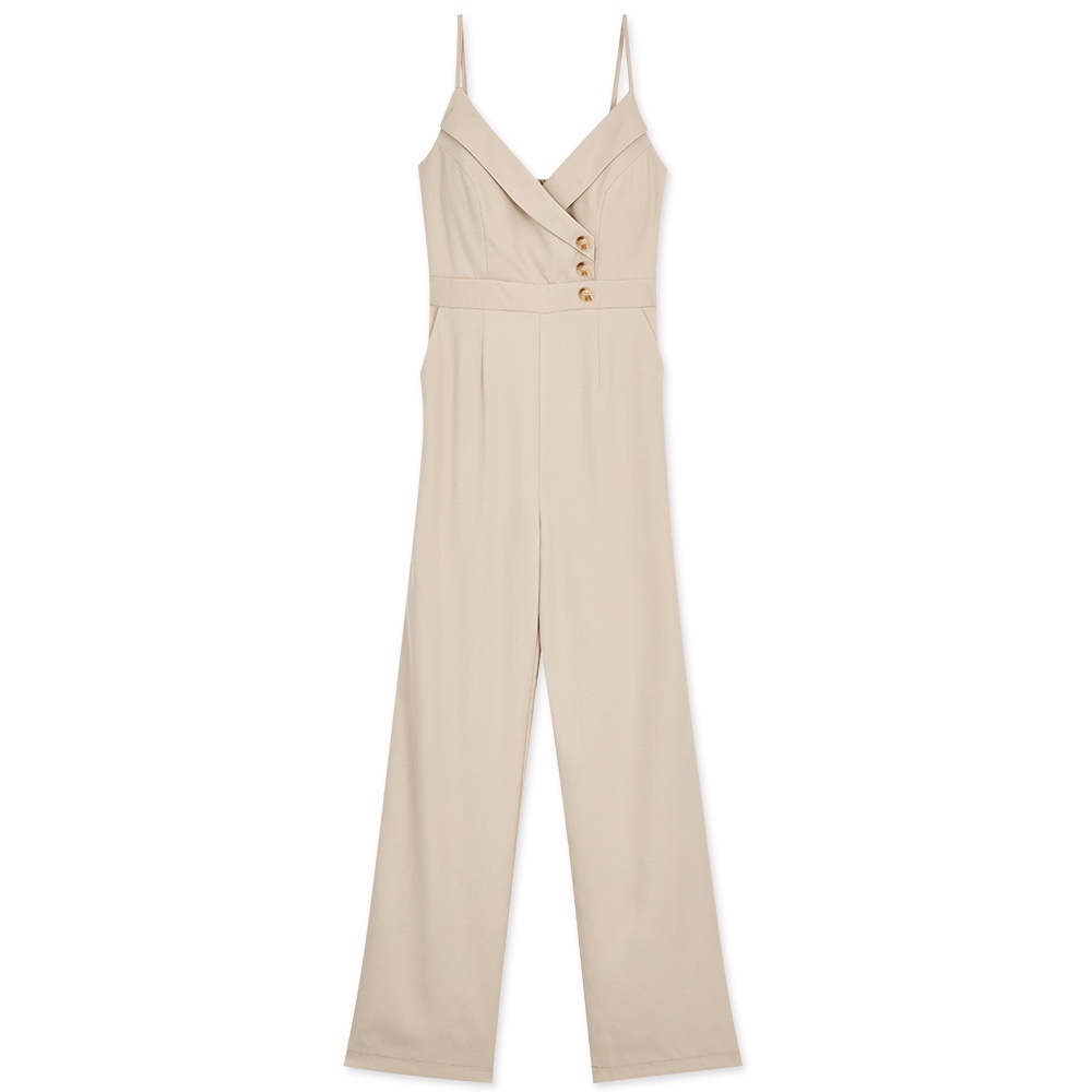 AIR SPACE 交疊釦造型細肩連身褲(附胸墊)(杏/灰藍) 女裝 現貨
