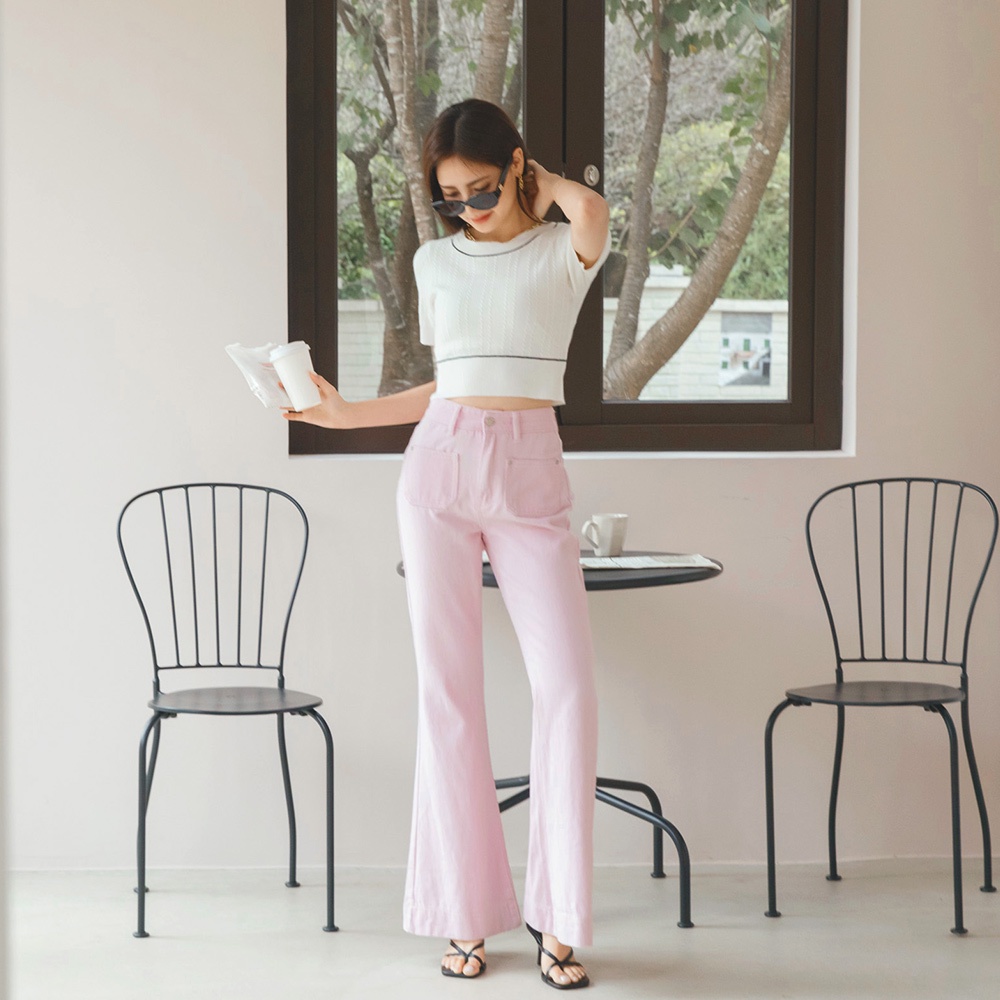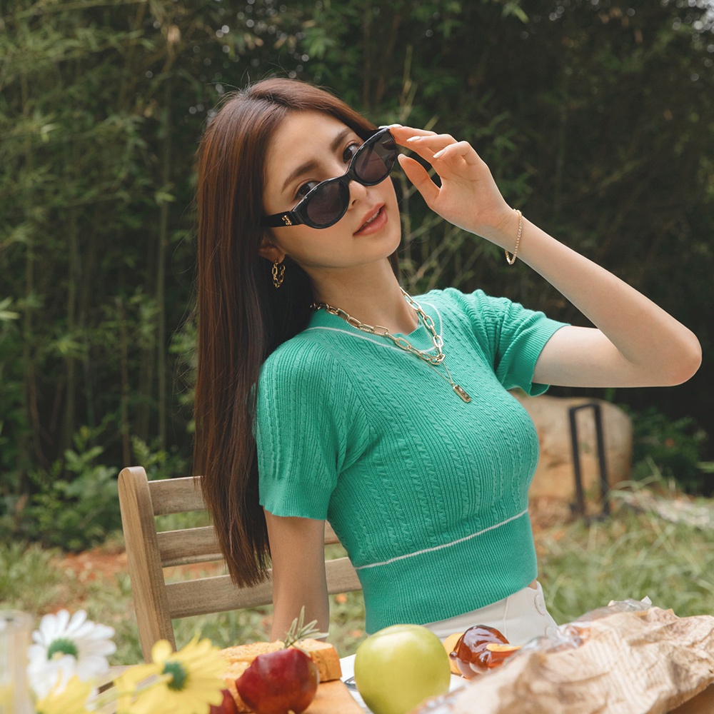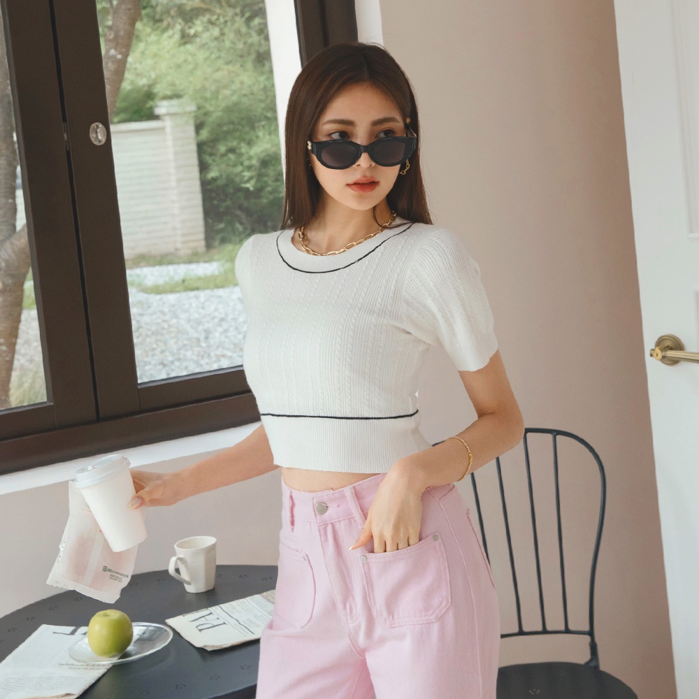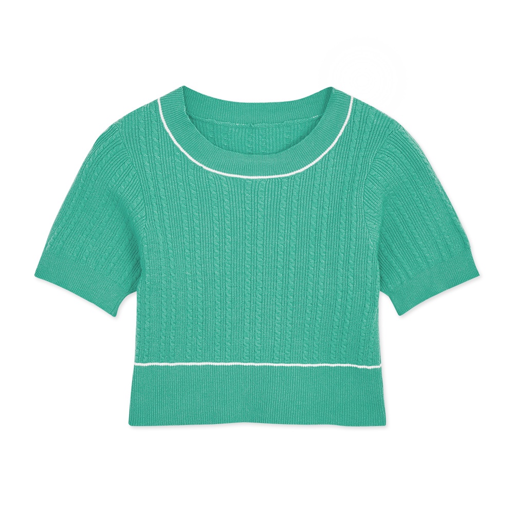 AIR SPACE LADY 麻花短版針織上衣(白/藍綠) 女裝 現貨