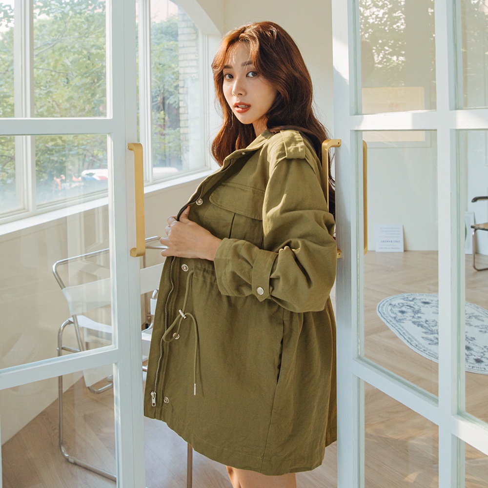 AIR SPACE LADY 2WAY抽綁縮腰工裝外套(卡其/軍綠) 女裝 現貨