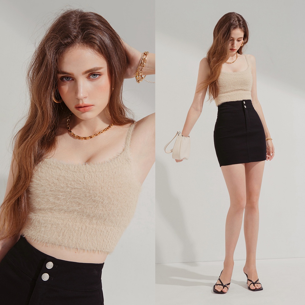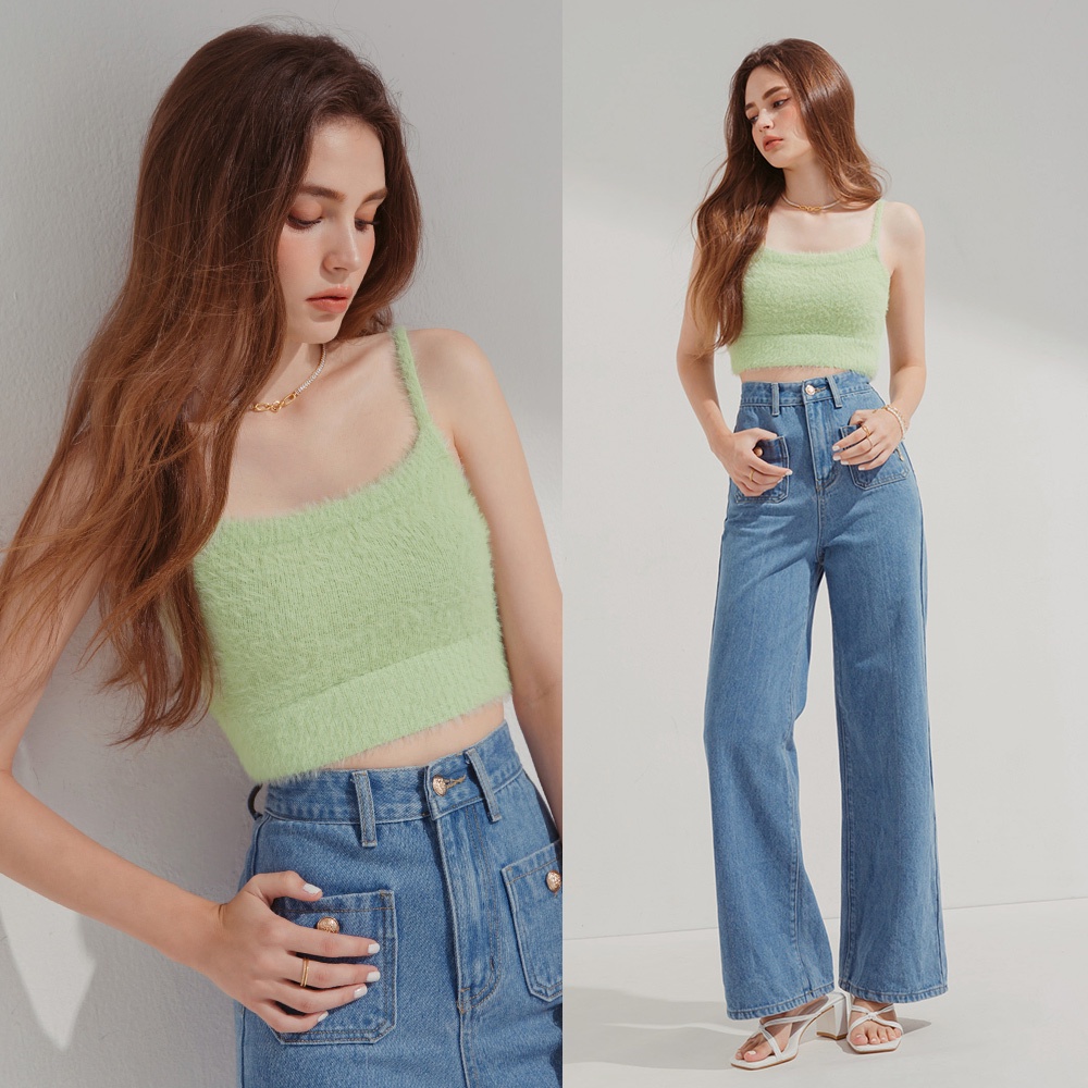 AIR SPACE 細肩仿貂毛短版背心(杏/粉紅/綠) 女裝 現貨