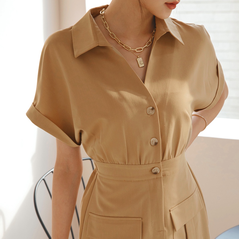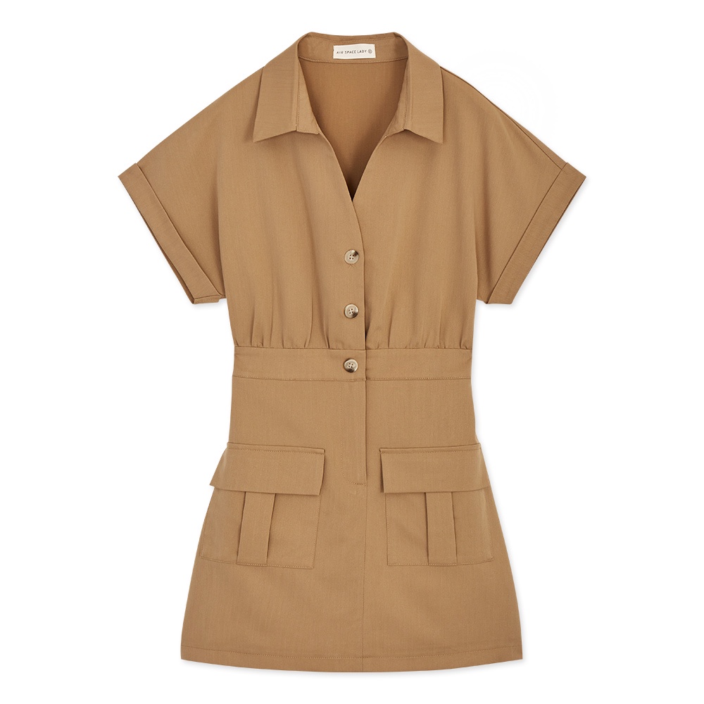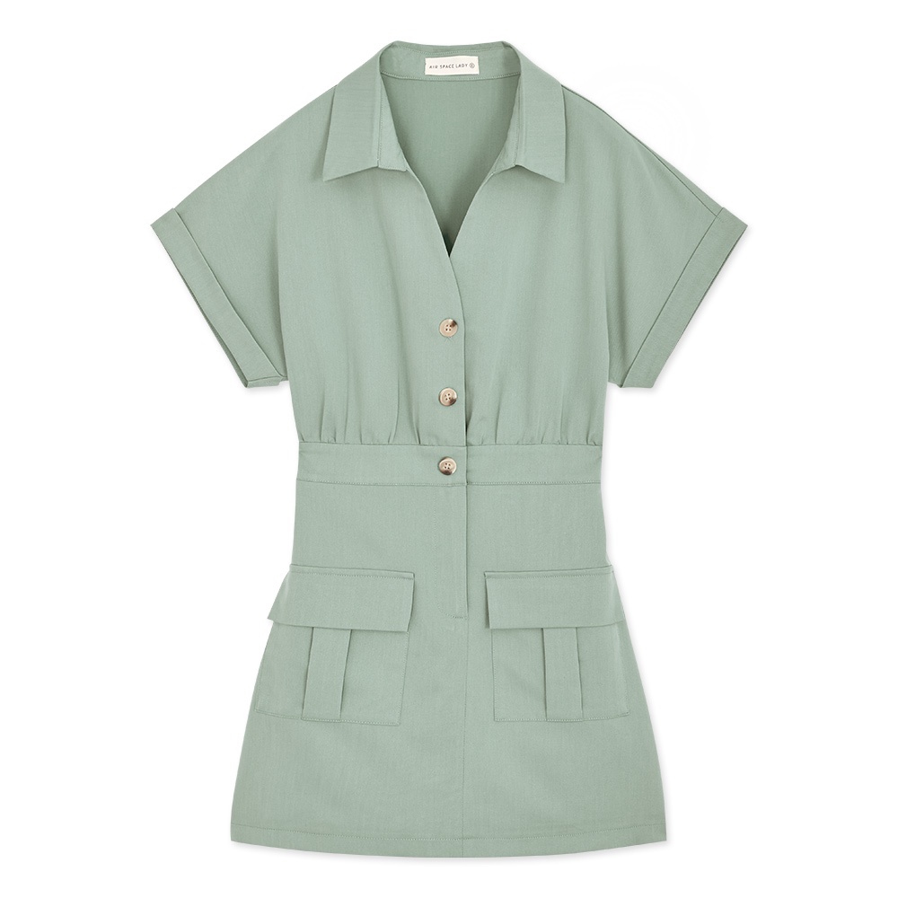 AIR SPACE LADY 工裝風落肩連身褲裙(卡其/灰綠) 女裝 現貨
