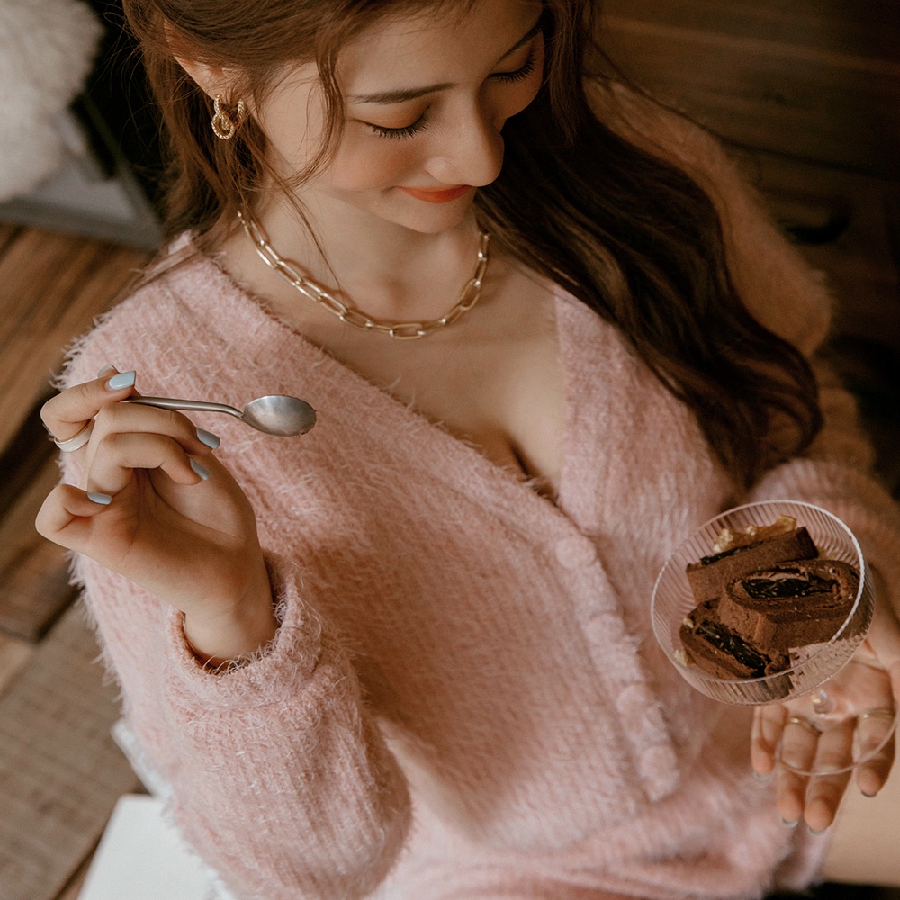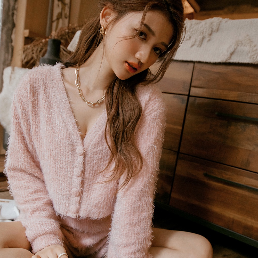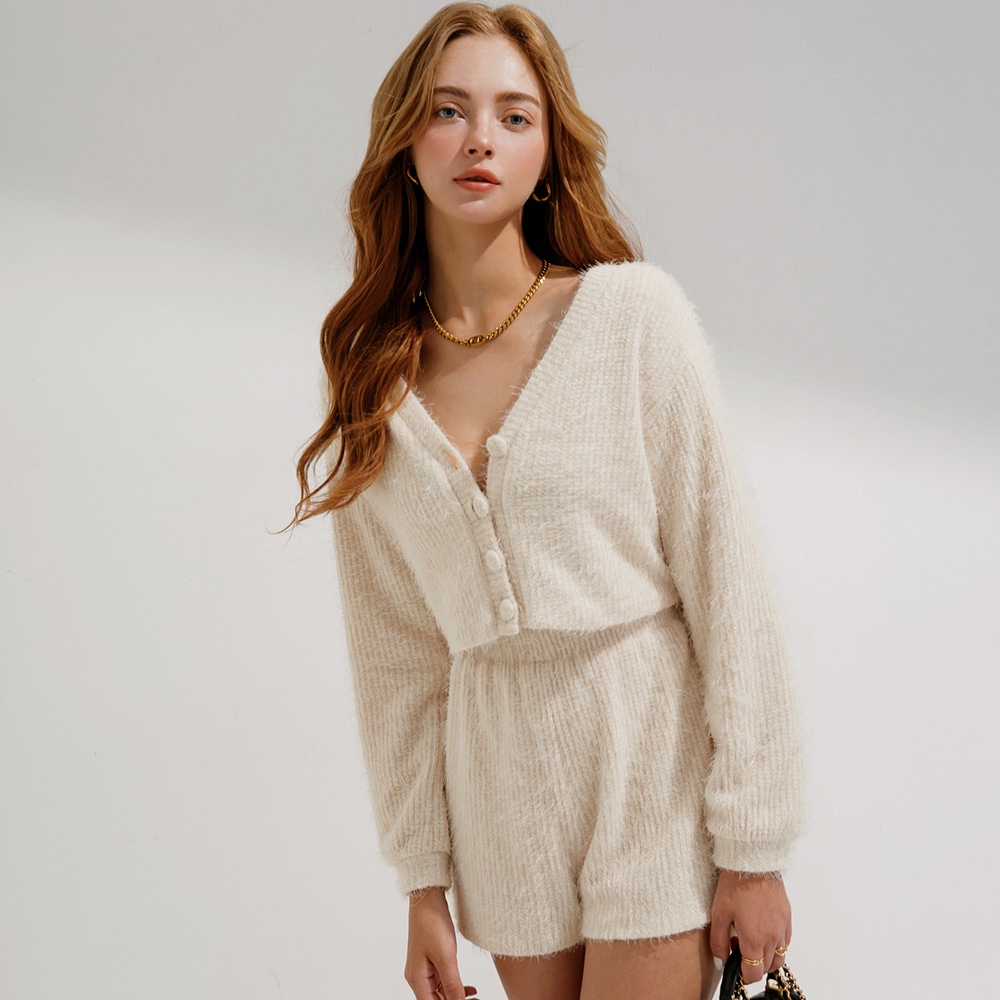 AIR SPACE V領毛毛排釦短褲套裝(粉紅/杏) 女裝 現貨