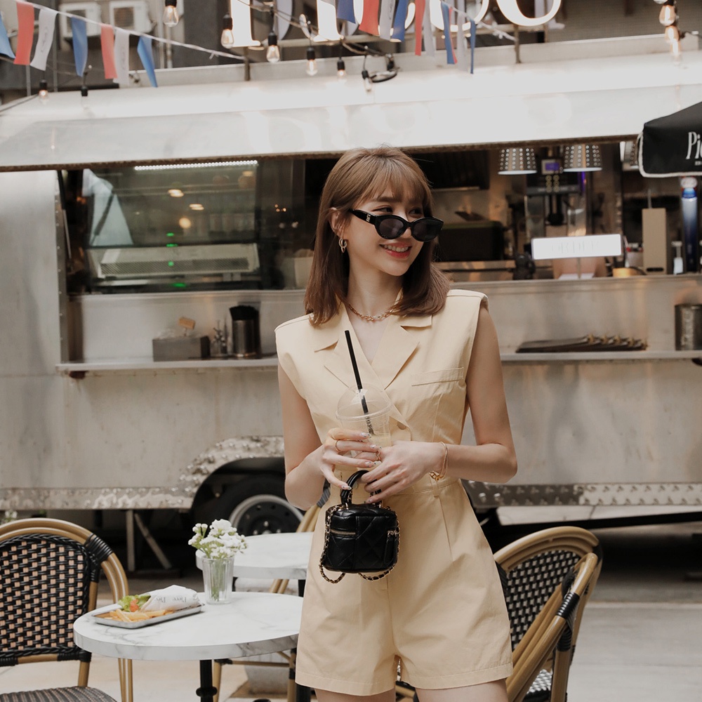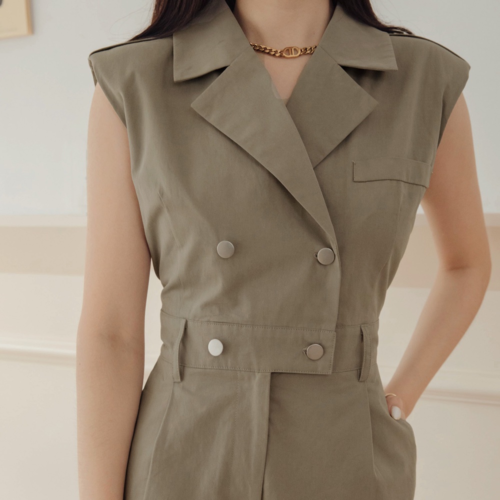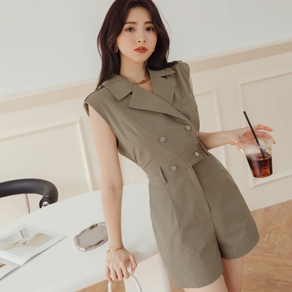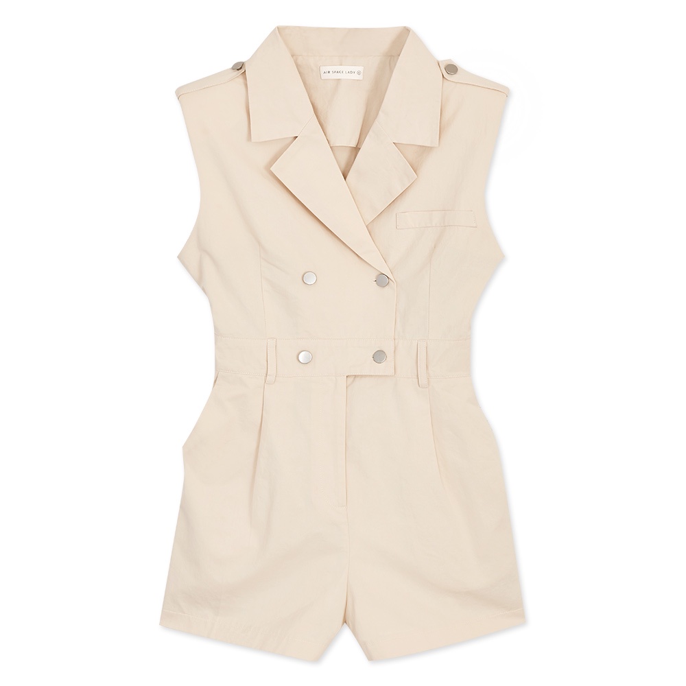 AIR SPACE LADY 時髦無袖墊肩連身短褲(卡其綠/杏) 女裝 現貨