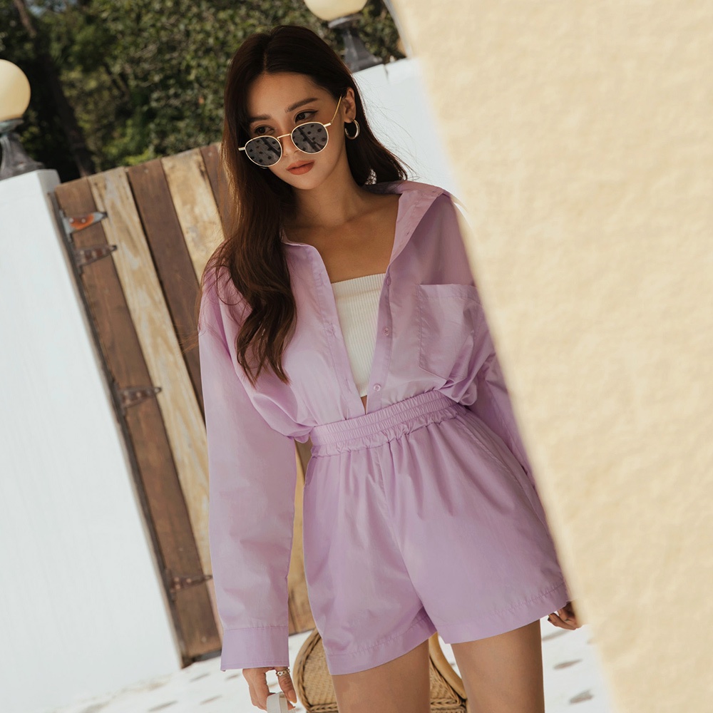 AIR SPACE LADY 休閒高腰鬆緊短褲(紫/白) 女裝 現貨