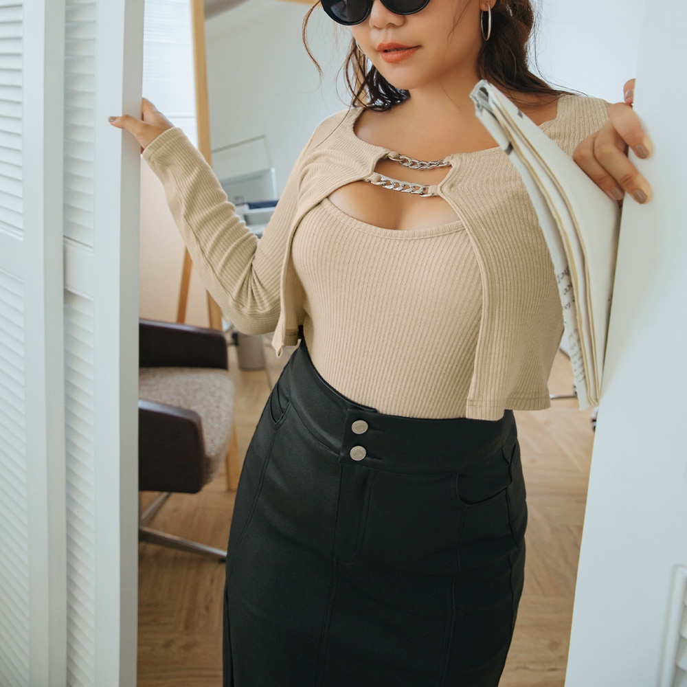 AIR SPACE PLUS 零修圖高腰顯瘦開衩皮革長裙(黑) 女裝 現貨 大尺碼 中大尺碼
