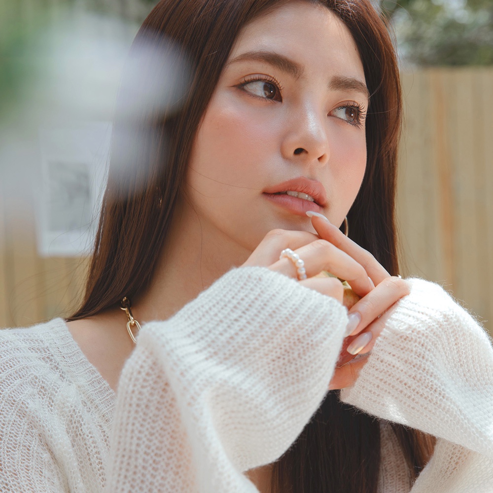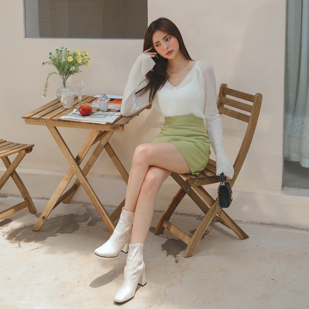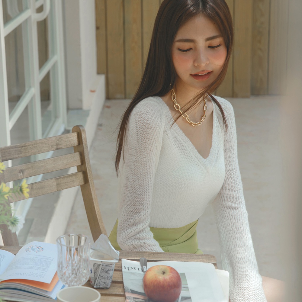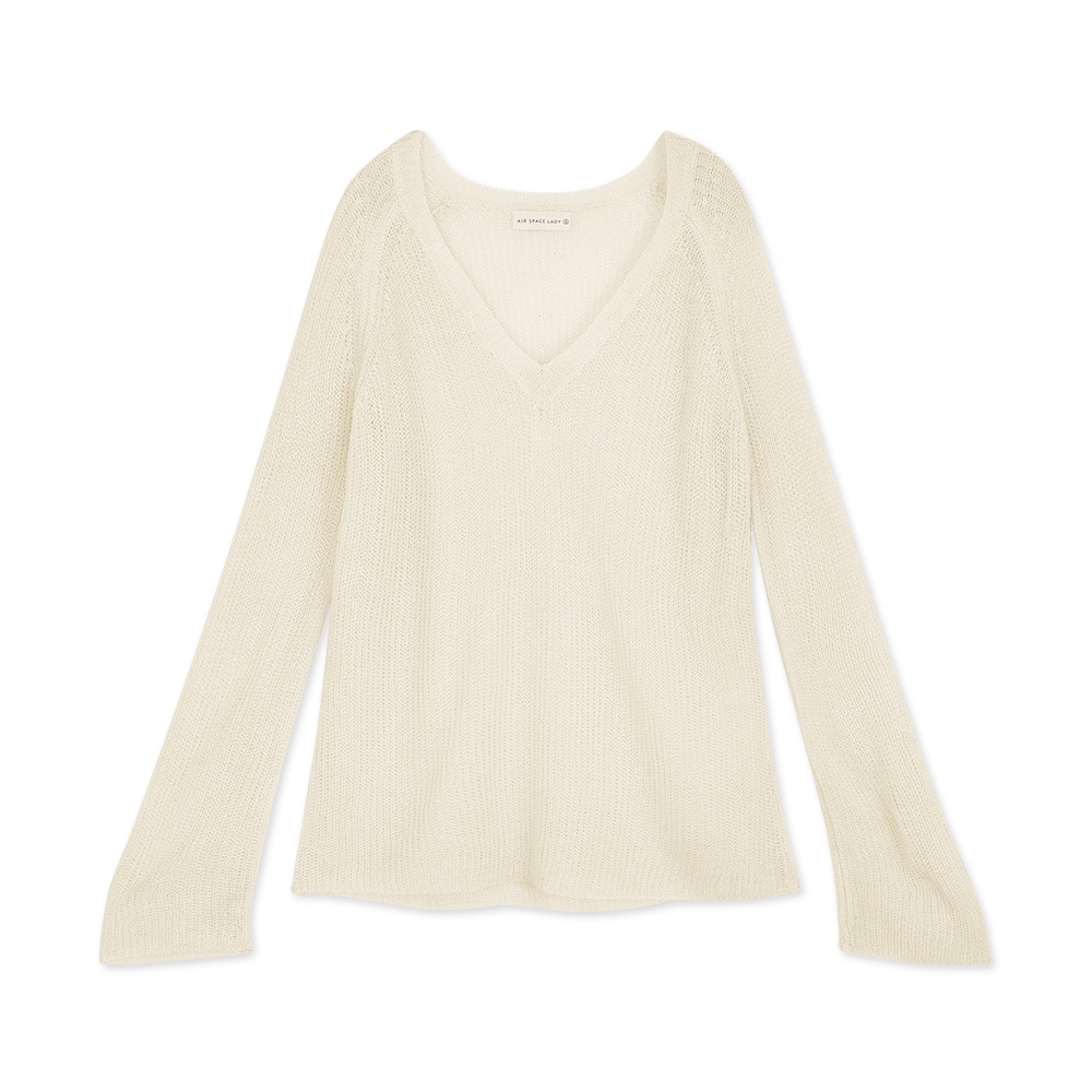 AIR SPACE LADY 慵懶V領透膚針織上衣(白/紫) 女裝 現貨