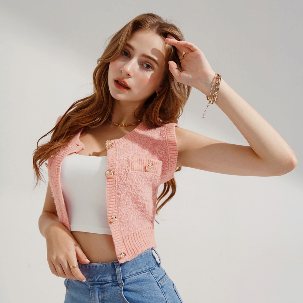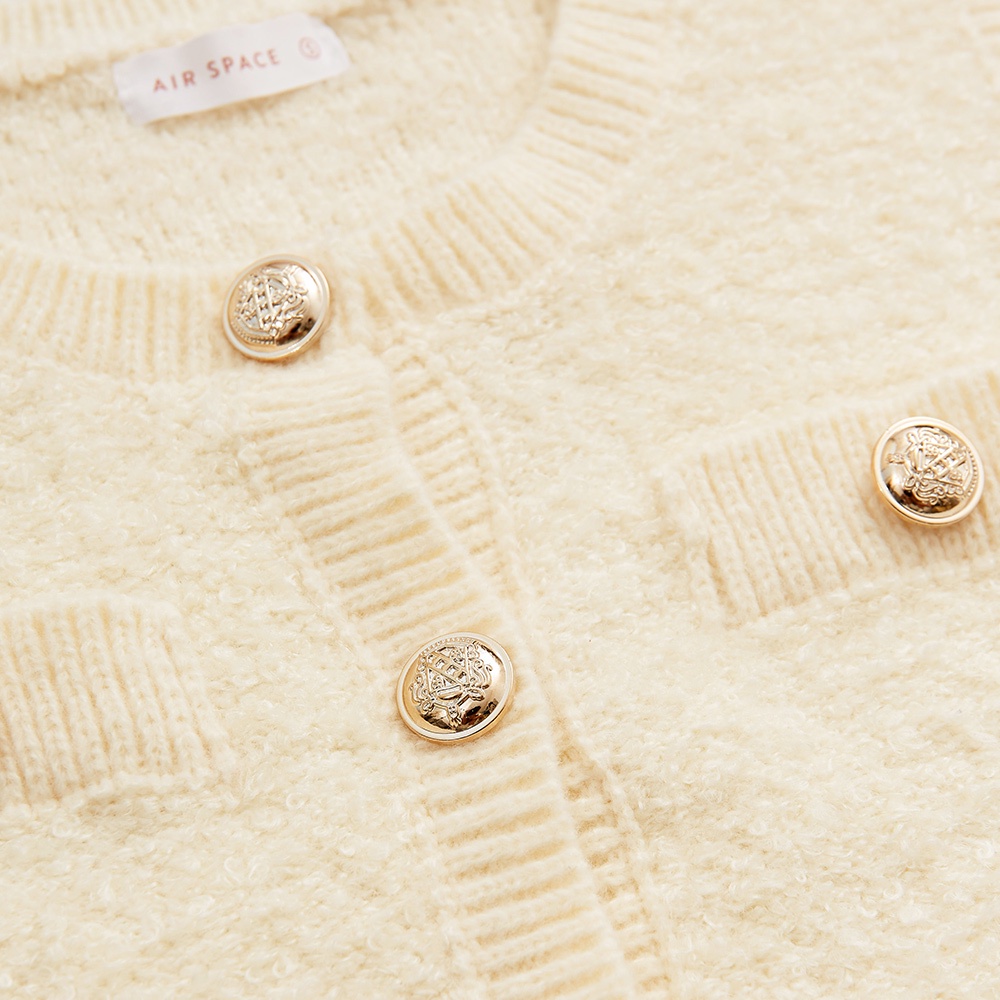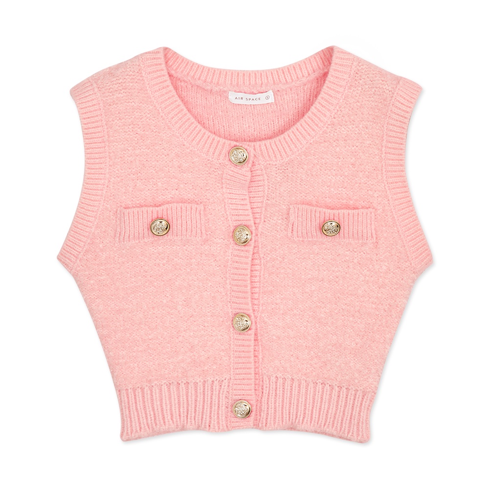 AIR SPACE 小香毛織金釦短版背心(奶油白/淺粉) 女裝 現貨