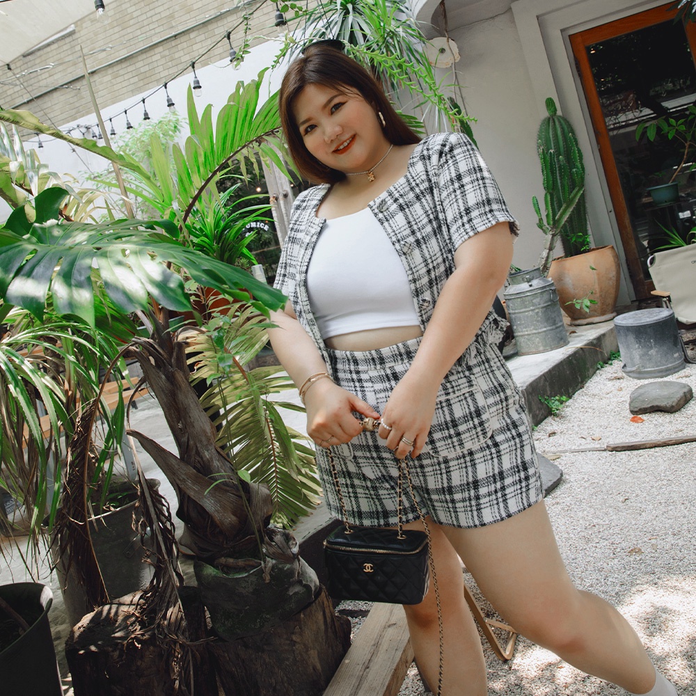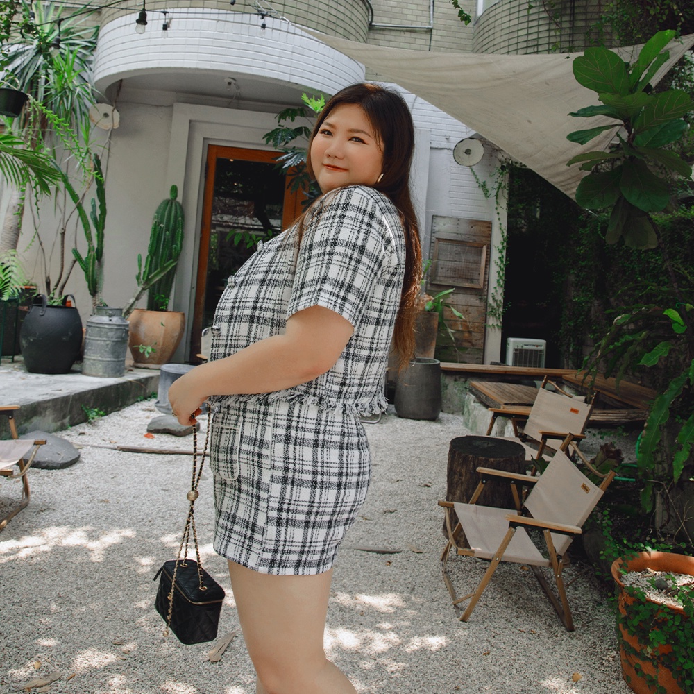 AIR SPACE PLUS 【奔奔選品】小香風鬆緊短褲(白/黑) 女裝 現貨 大尺碼 中大尺碼