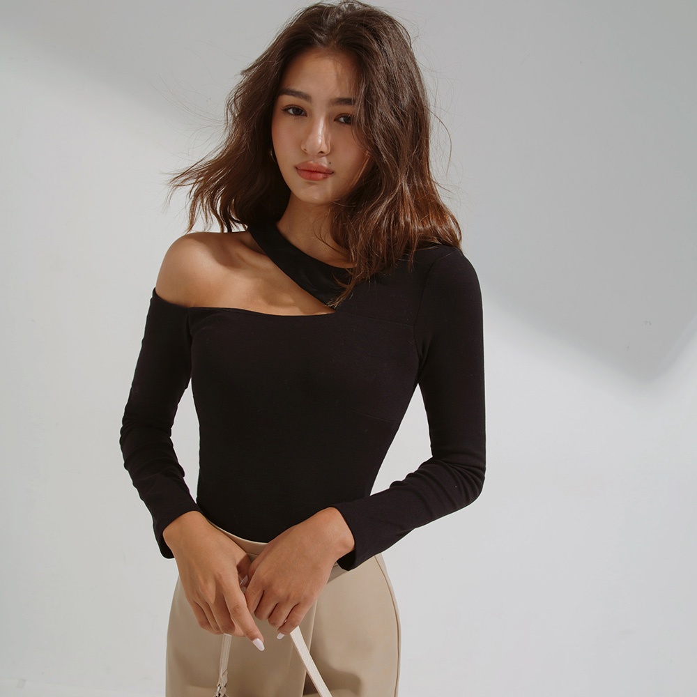 AIR SPACE 側挖空合身長袖上衣(卡其/黑) 女裝 現貨