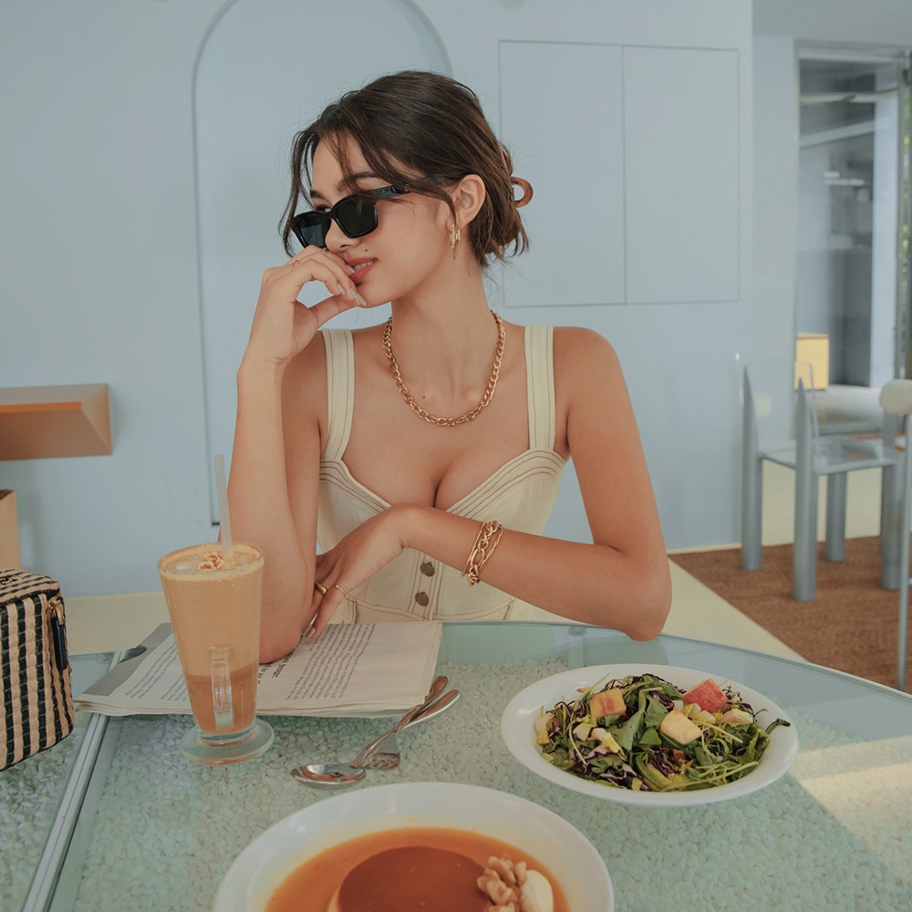 AIR SPACE 率性車線丹寧細肩連身短褲(米白/黑) 女裝 現貨
