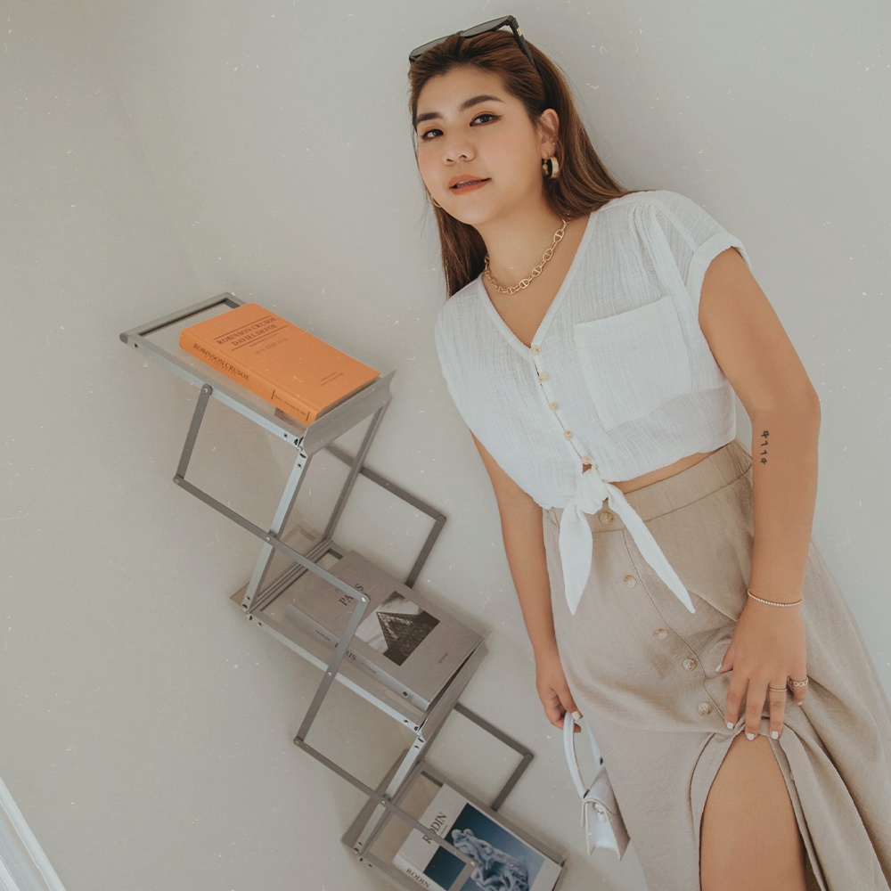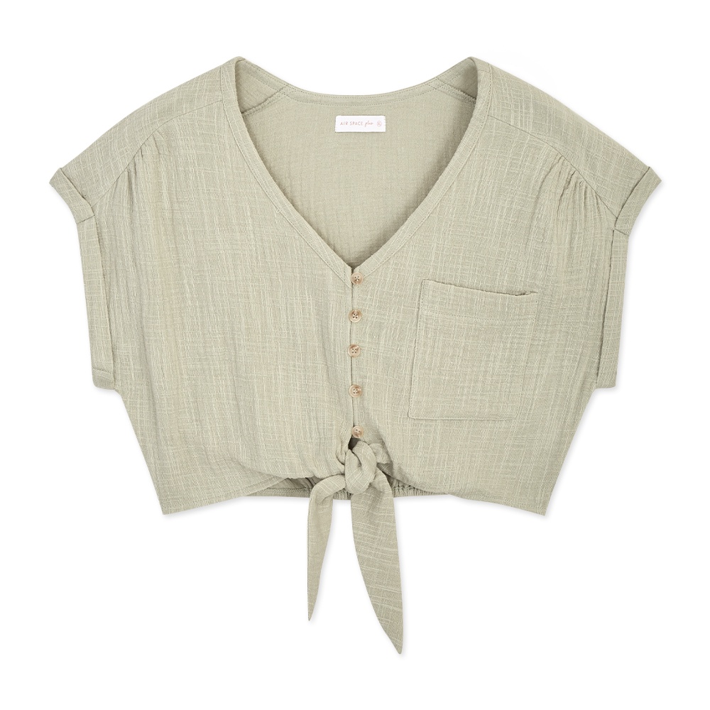 AIR SPACE PLUS 皺皺棉下綁結短版無袖背心(白/灰綠) 女裝 現貨 大尺碼 中大尺碼