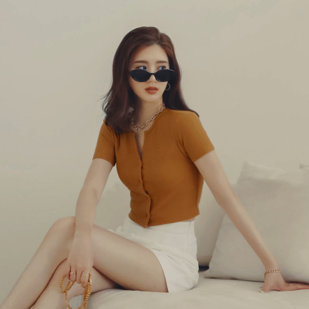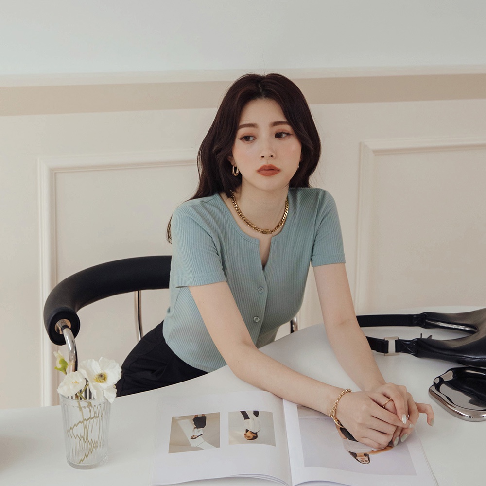 AIR SPACE LADY 小華夫格排釦上衣(橘咖/藍灰/奶油白) 女裝 現貨