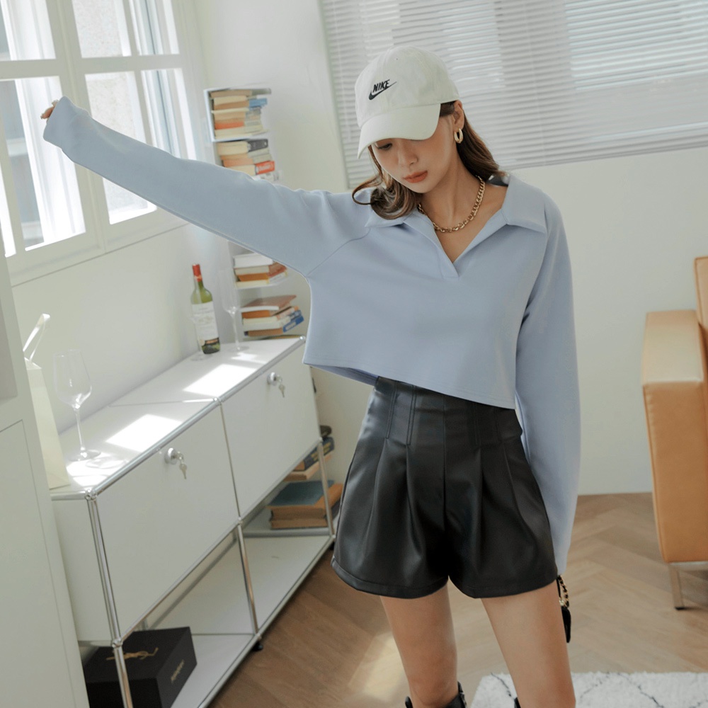 AIR SPACE LADY 素色翻領寬鬆短版上衣(淺藍/杏) 女裝 現貨