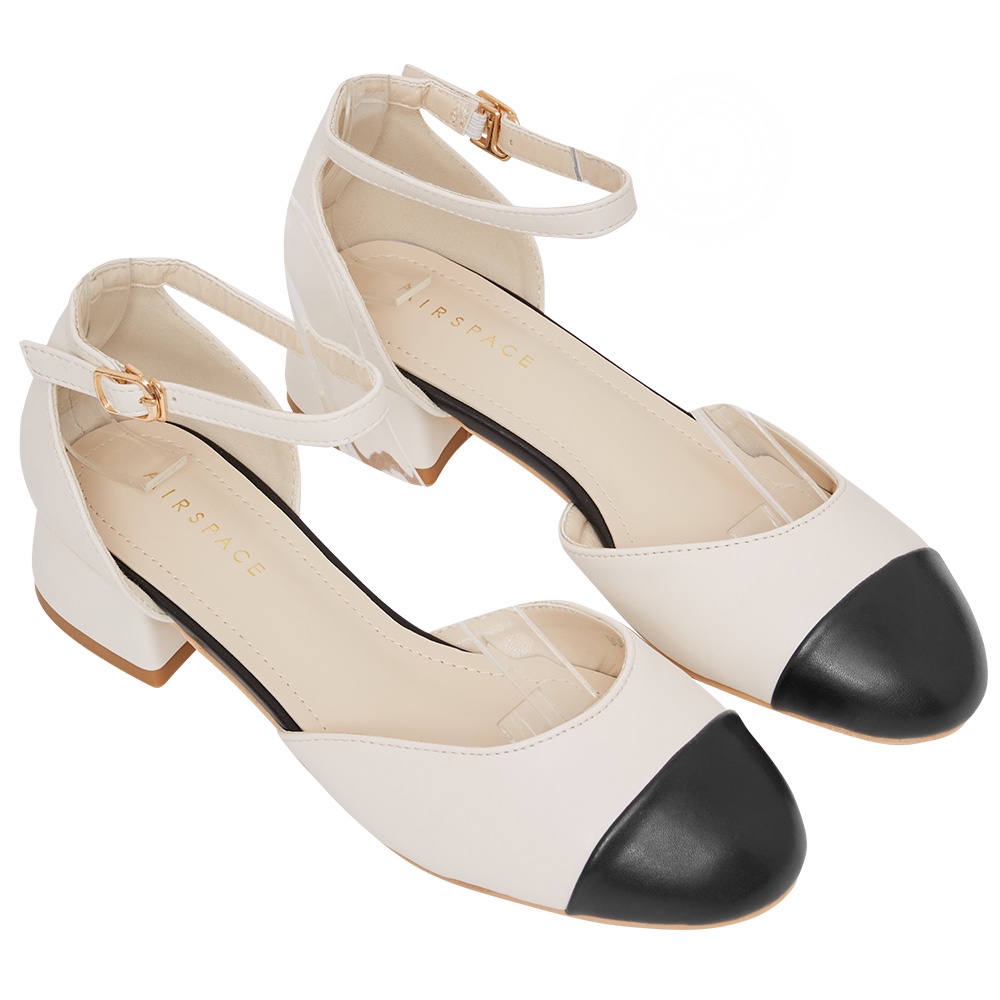 AIR SPACE 小香風繫帶繞踝低跟包鞋(米白) 女鞋