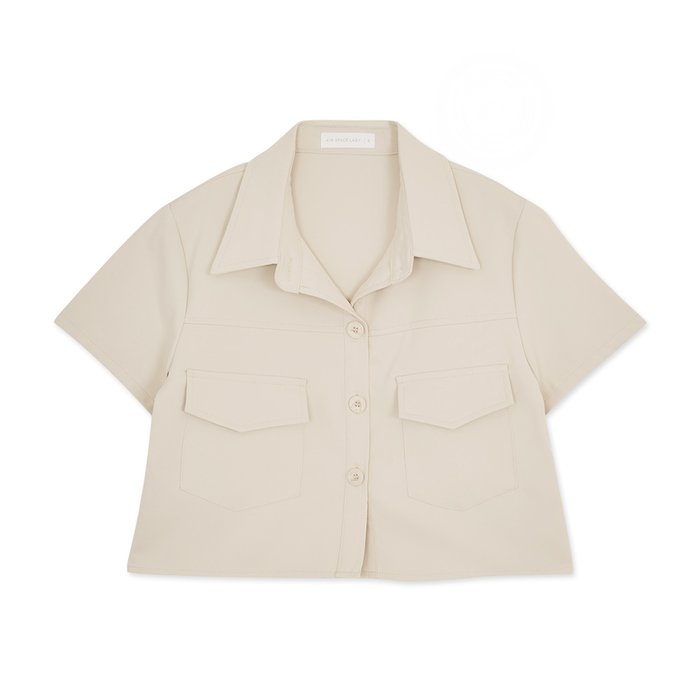 AIR SPACE PLUS 翻領圓釦短版上衣(杏/灰綠) 女裝 現貨 大尺碼 中大尺碼