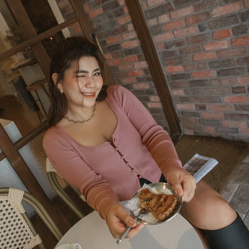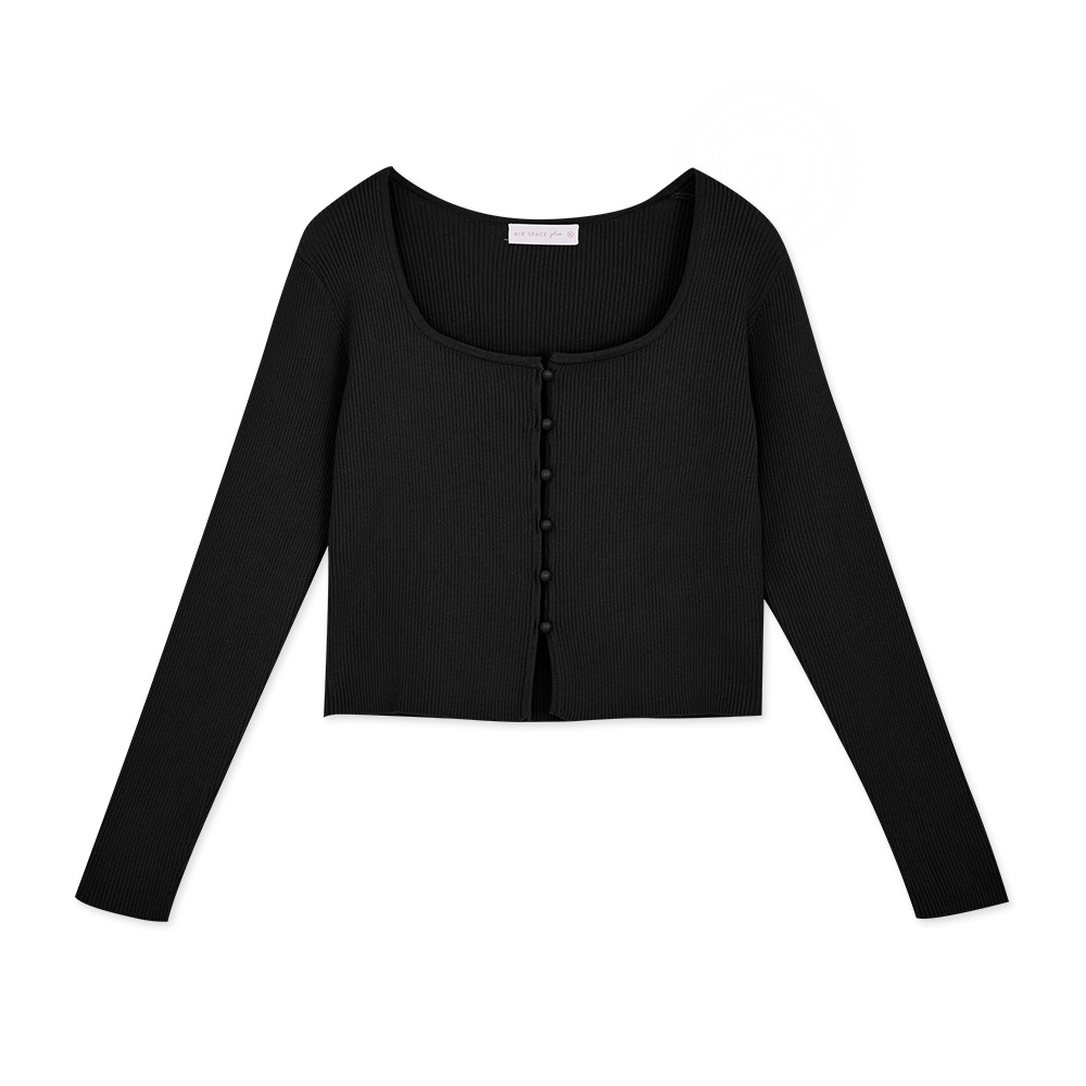 AIR SPACE PLUS 方領排釦短版針織上衣(紫/黑) 女裝 現貨 大尺碼 中大尺碼