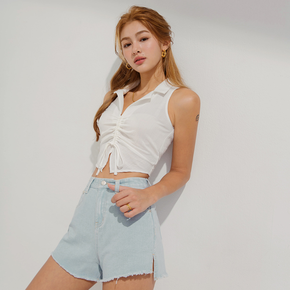 AIR SPACE 翻領抽繩背心(白/藍) 女裝 現貨