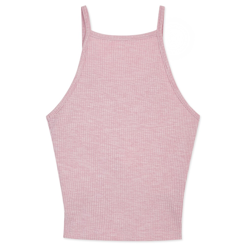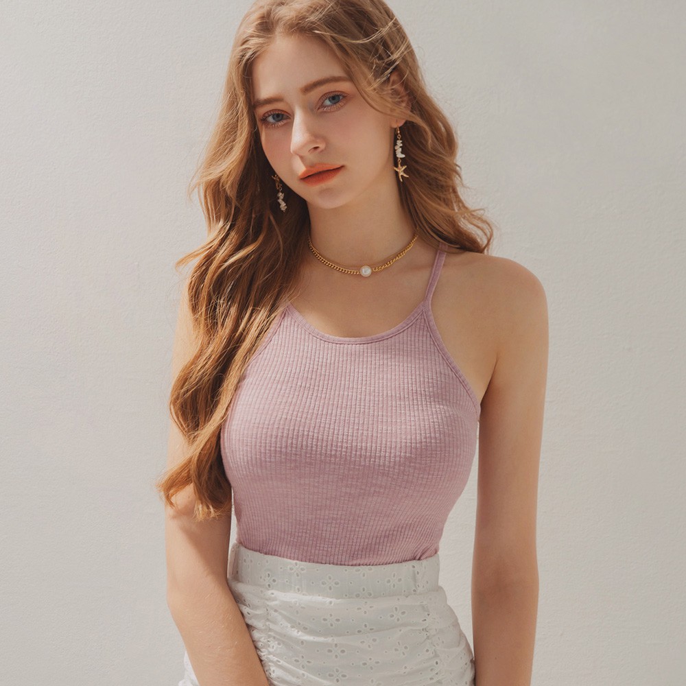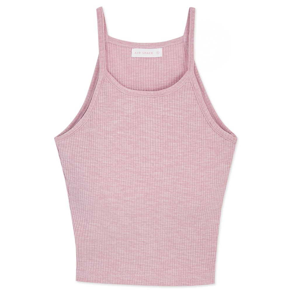AIR SPACE 歐美感削肩短版羅紋背心(附胸墊)(粉紫)