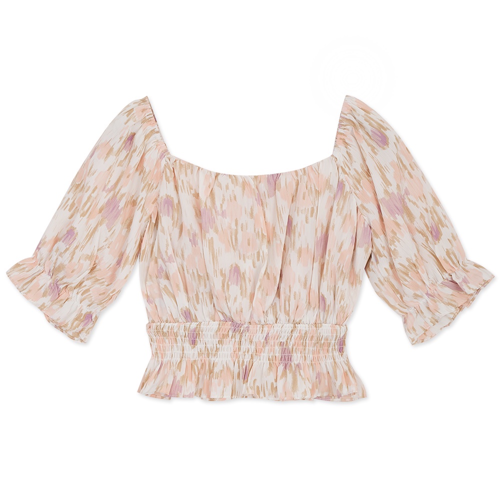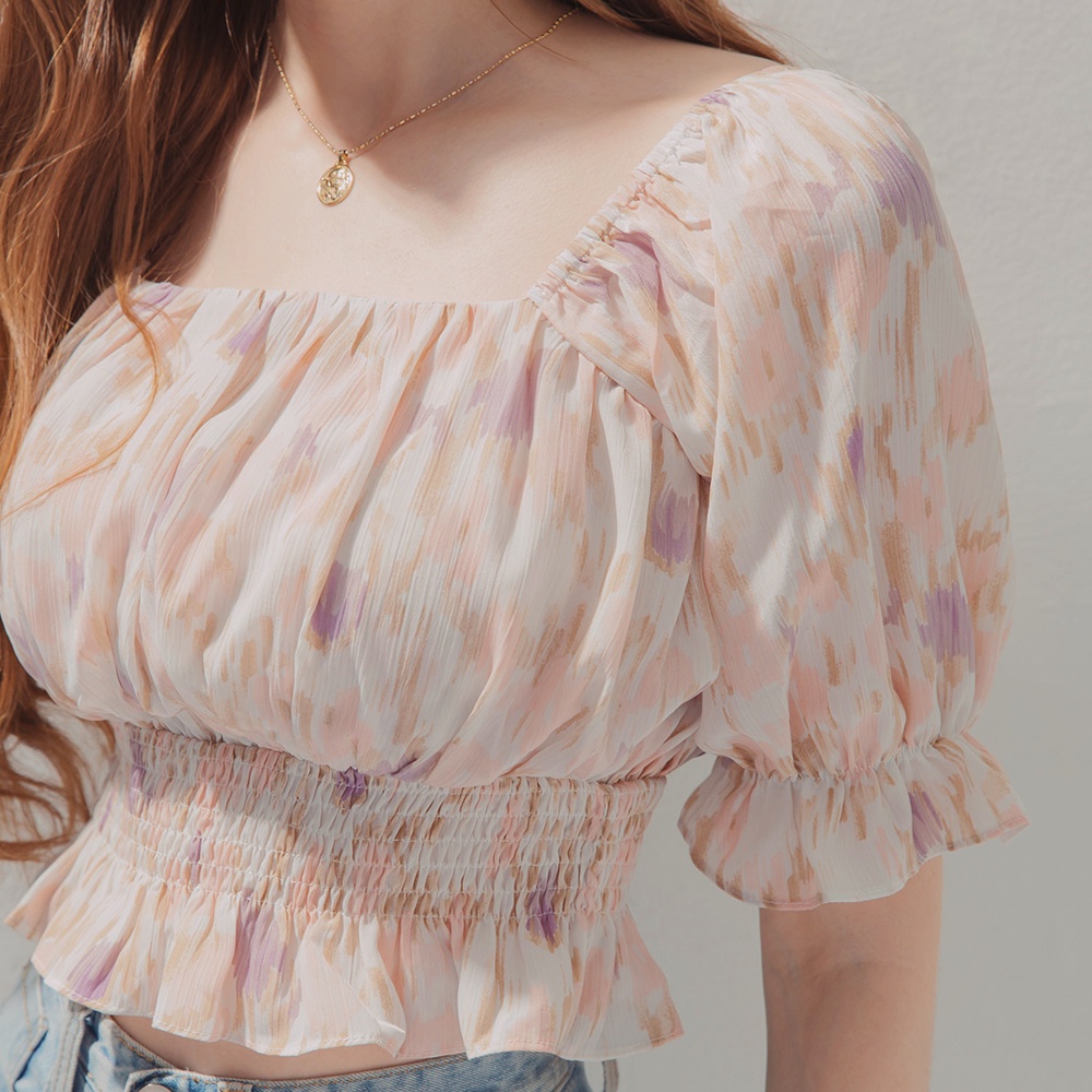 AIR SPACE 方領澎袖渲染荷葉縮腰上衣(粉紅)