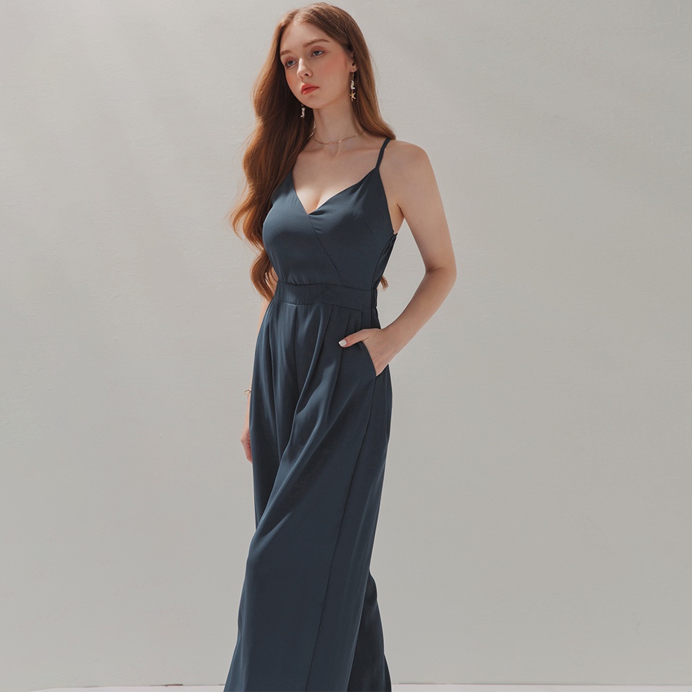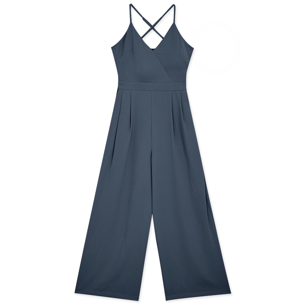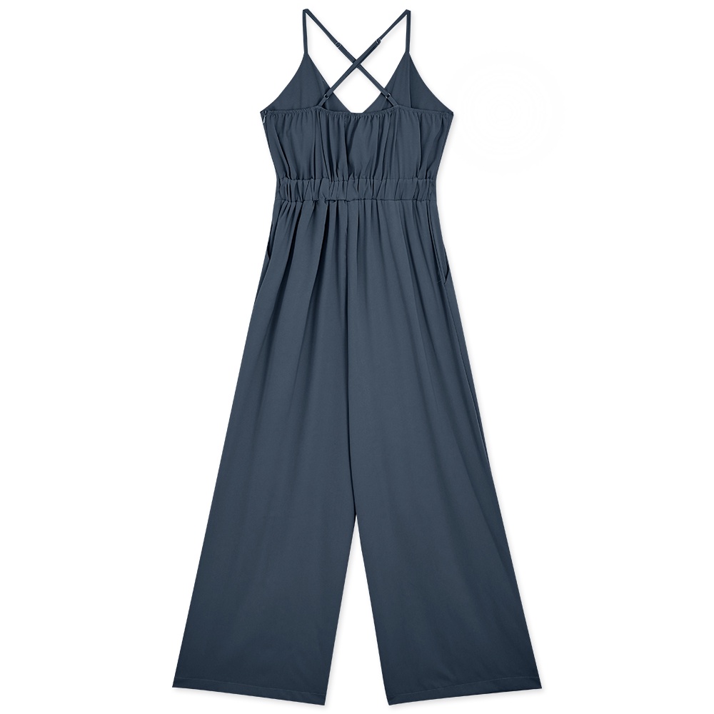 AIR SPACE 細肩背交叉連身褲(附胸墊)(藍綠)