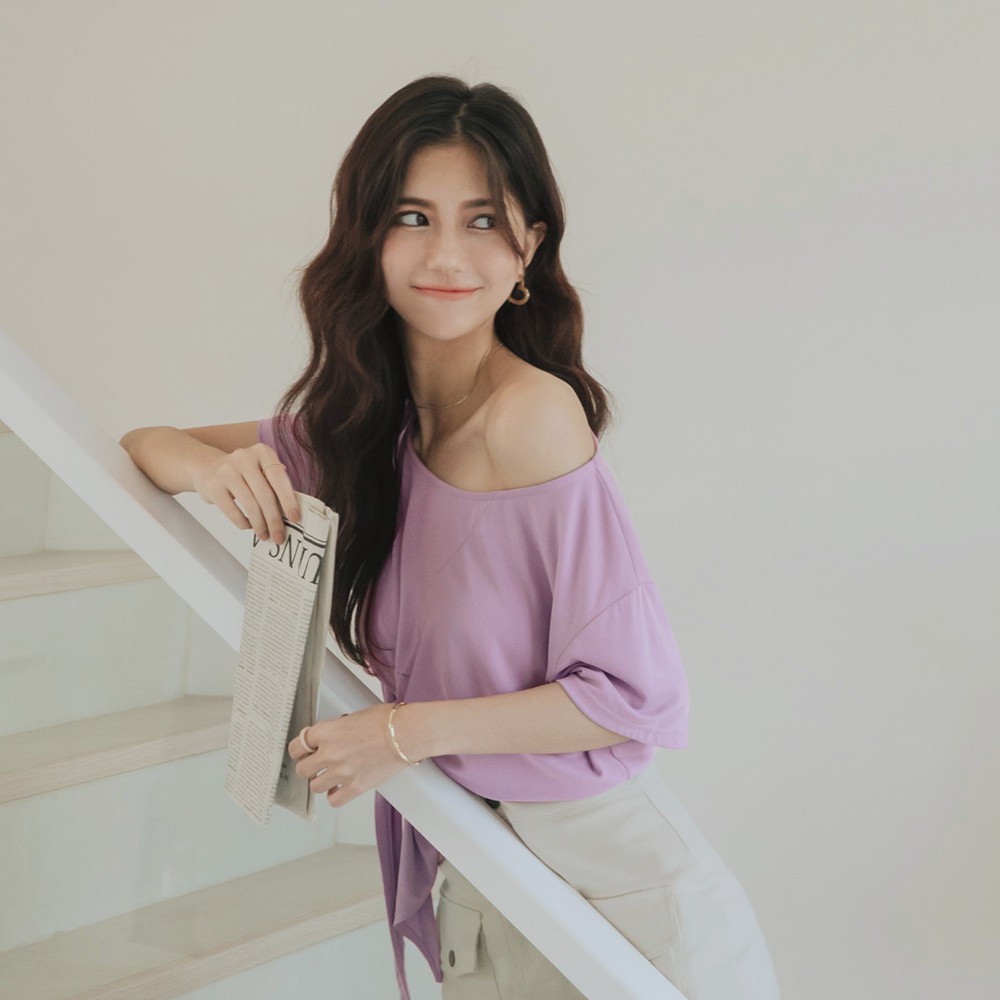 AIR SPACE LADY 涼感莫代爾下綁帶上衣(紫)