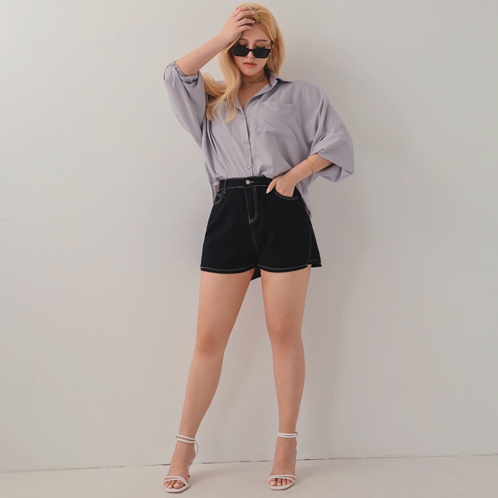 AIR SPACE PLUS 中大尺碼 細節車線顯瘦短褲(黑)