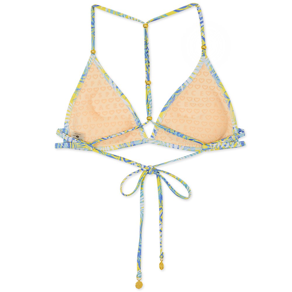 AIR SPACE 印花珠飾Y字美背爆乳比基尼(黃底綠葉) 泳裝 泳衣 中大尺碼 溫泉