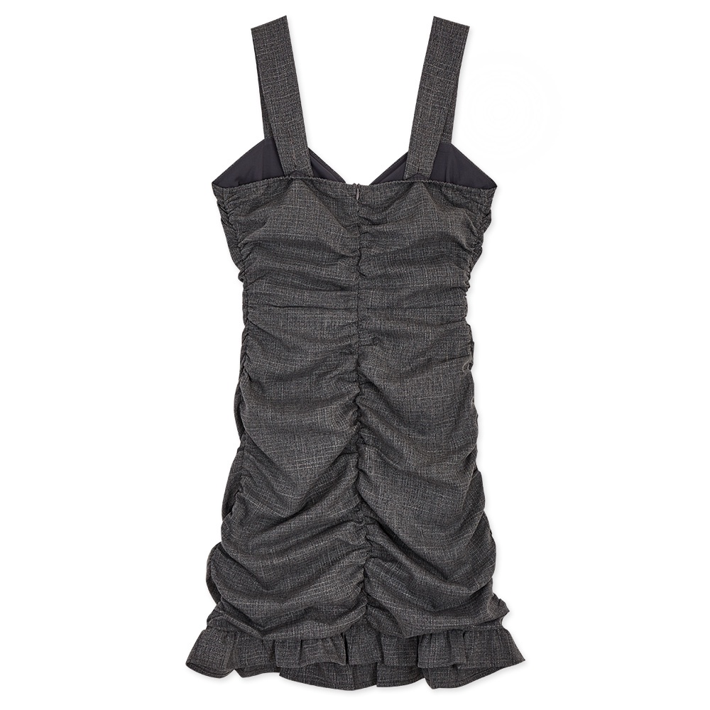 AIR SPACE 排釦皺皺荷葉包臀短洋裝(深花灰)
