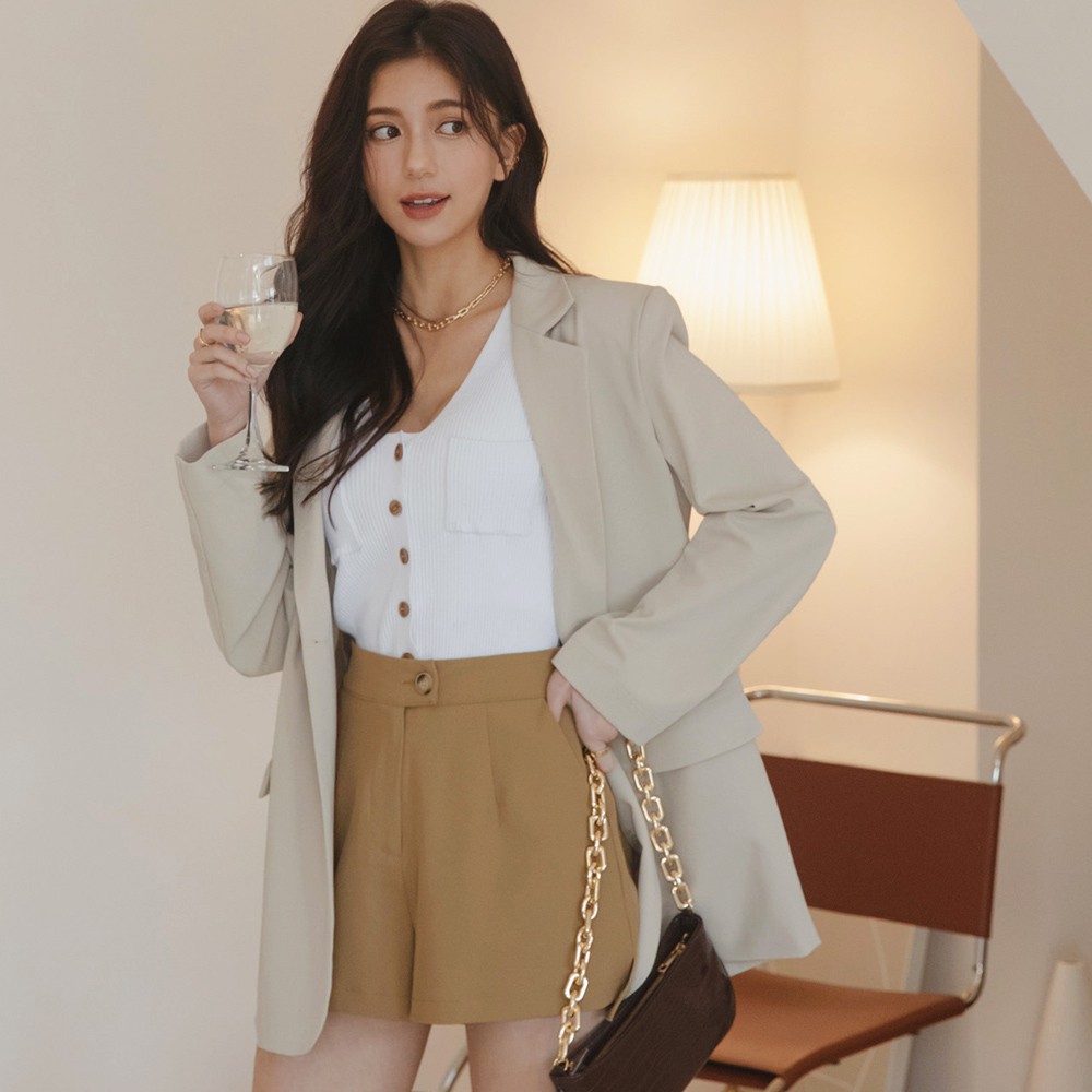 AIR SPACE LADY 長腿CEO修臀顯瘦西裝短褲(卡其)